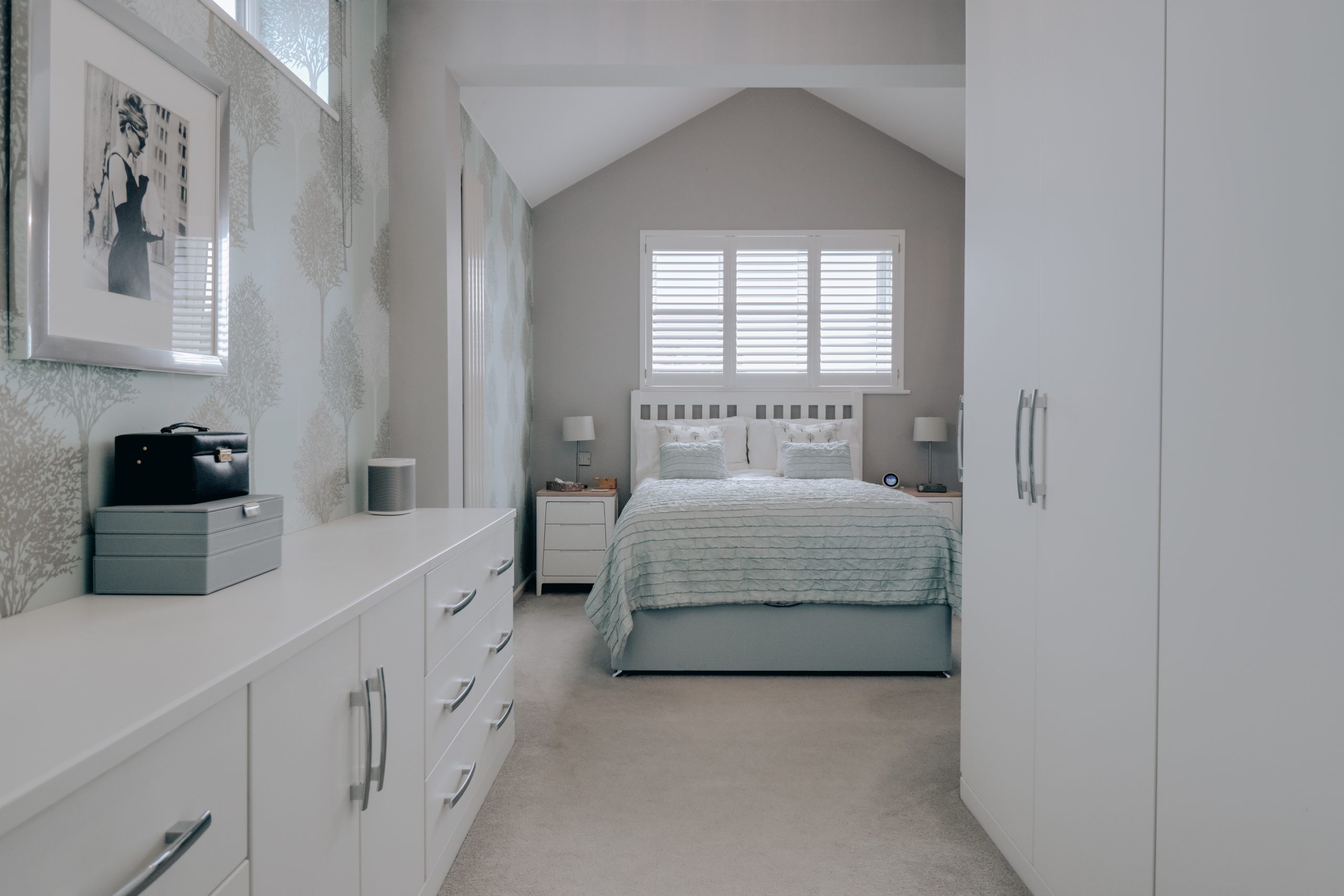 Upstairs, three generously proportioned bedrooms carry forward the home’s refined design narrative. The principal suite (19'11" x 9'10") is a standout in every respect: bespoke built-in cabinetry creates a sense of considered luxury on entry, before the room opens into a vaulted-ceilinged sanctuary where space and light combine to dramatic effect. Part of a later extension, so seamlessly executed that it feels entirely original, this is a room where no expense has been spared, its finish and detailing underscoring the home’s superior calibre. Two further bedrooms are equally well-appointed, offering versatility for family, guests, or even a dedicated home office. The family bathroom completes the upper level in style; a serene retreat featuring a large bathtub with overhead rainfall shower and contemporary fixtures, all echoing the home’s cohesive modern aesthetic.
