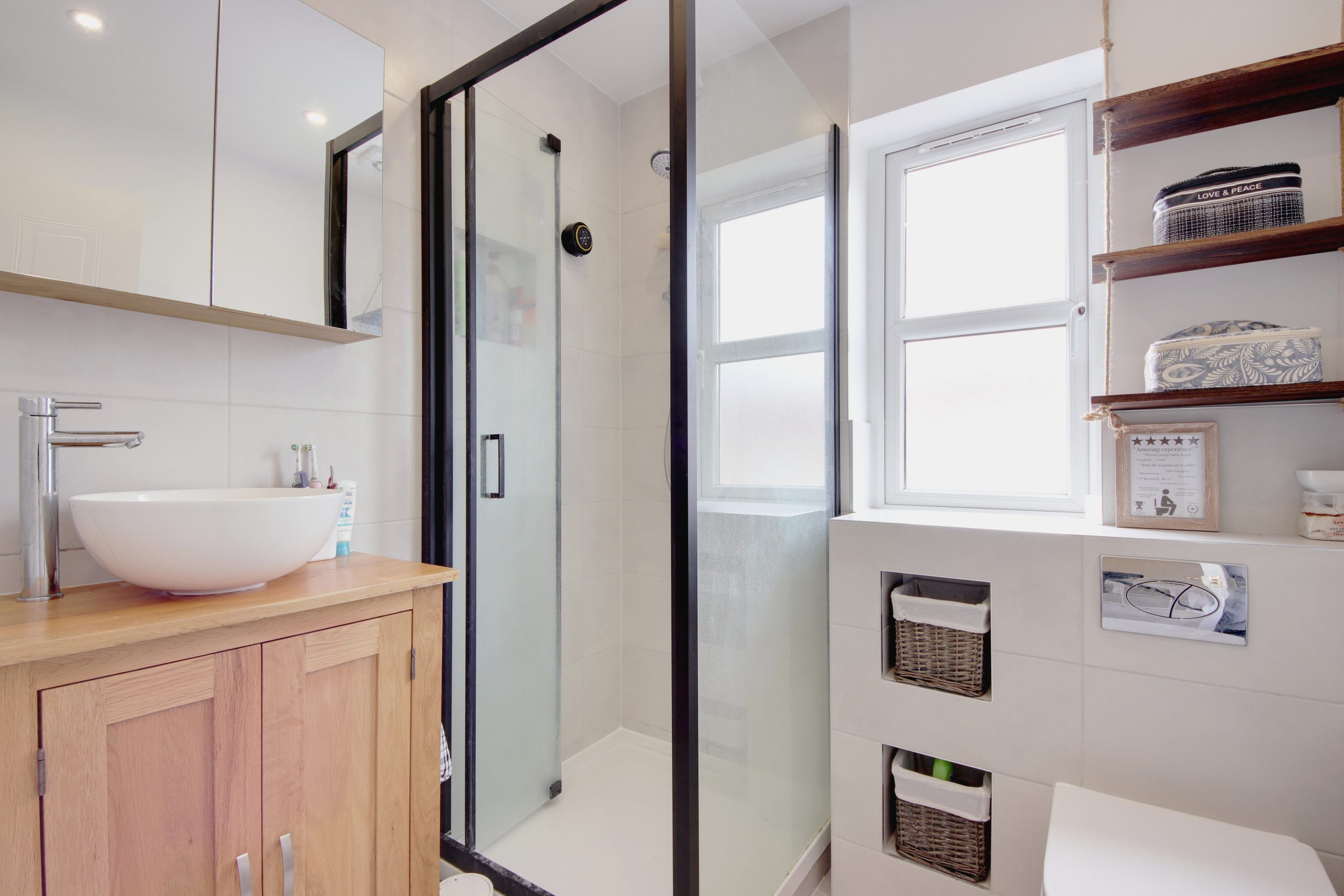 Upon entering the residence, you are immediately greeted by a hallway offering convenient access to all ground floor living areas. To the right, a contemporary kitchen comes equipped with a solid wood worktop and neutral cabinetry concealing appliances. The reception room is located at the rear of the plan where bright white uPVC French doors illuminate the space with natural light whilst offering beautiful views of the newly landscaped, low maintenance, secluded rear garden with the added convenience of side access. Offering ample space for a large dining table and chairs, this makes for the perfect space to entertain guests.