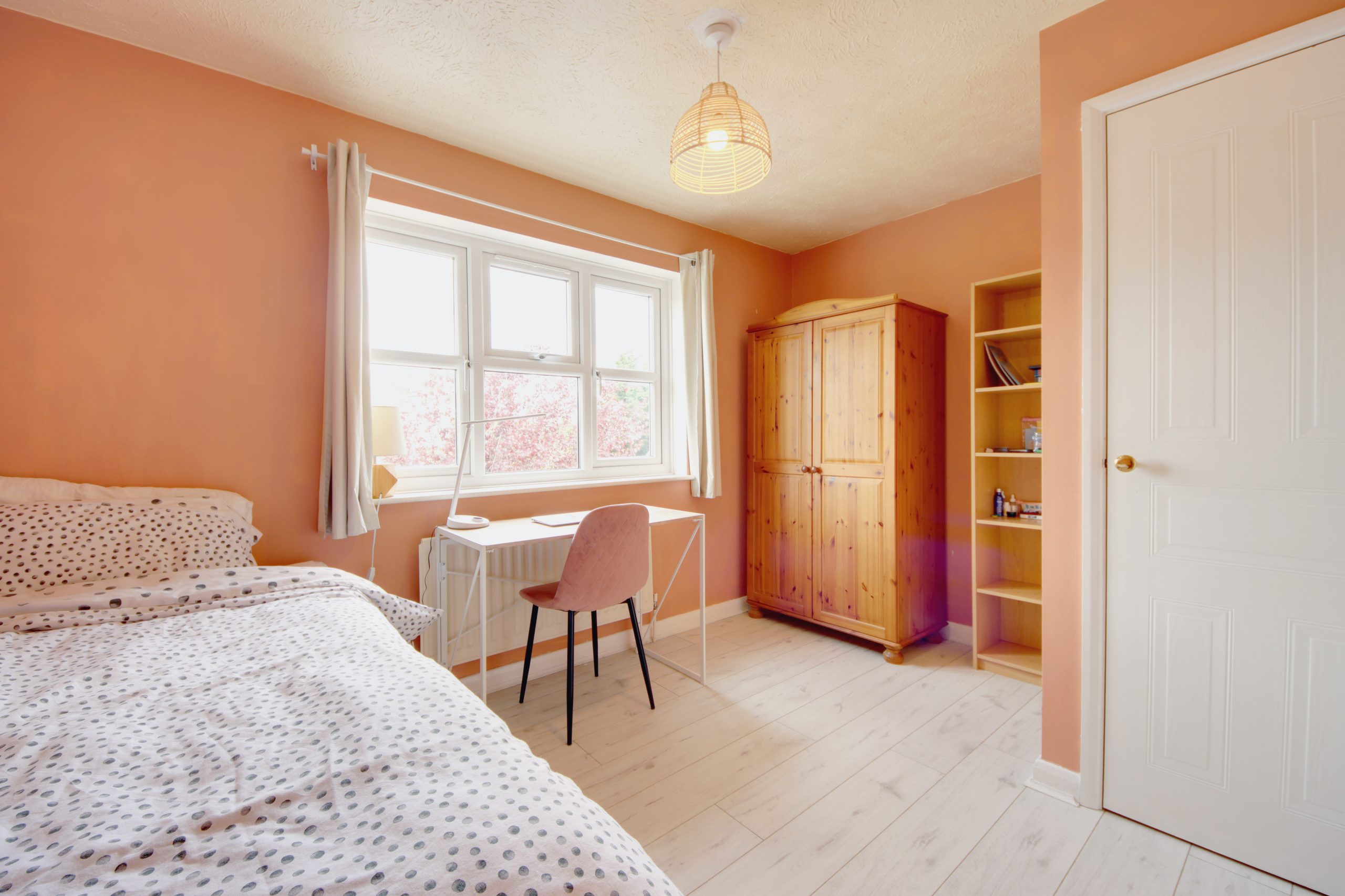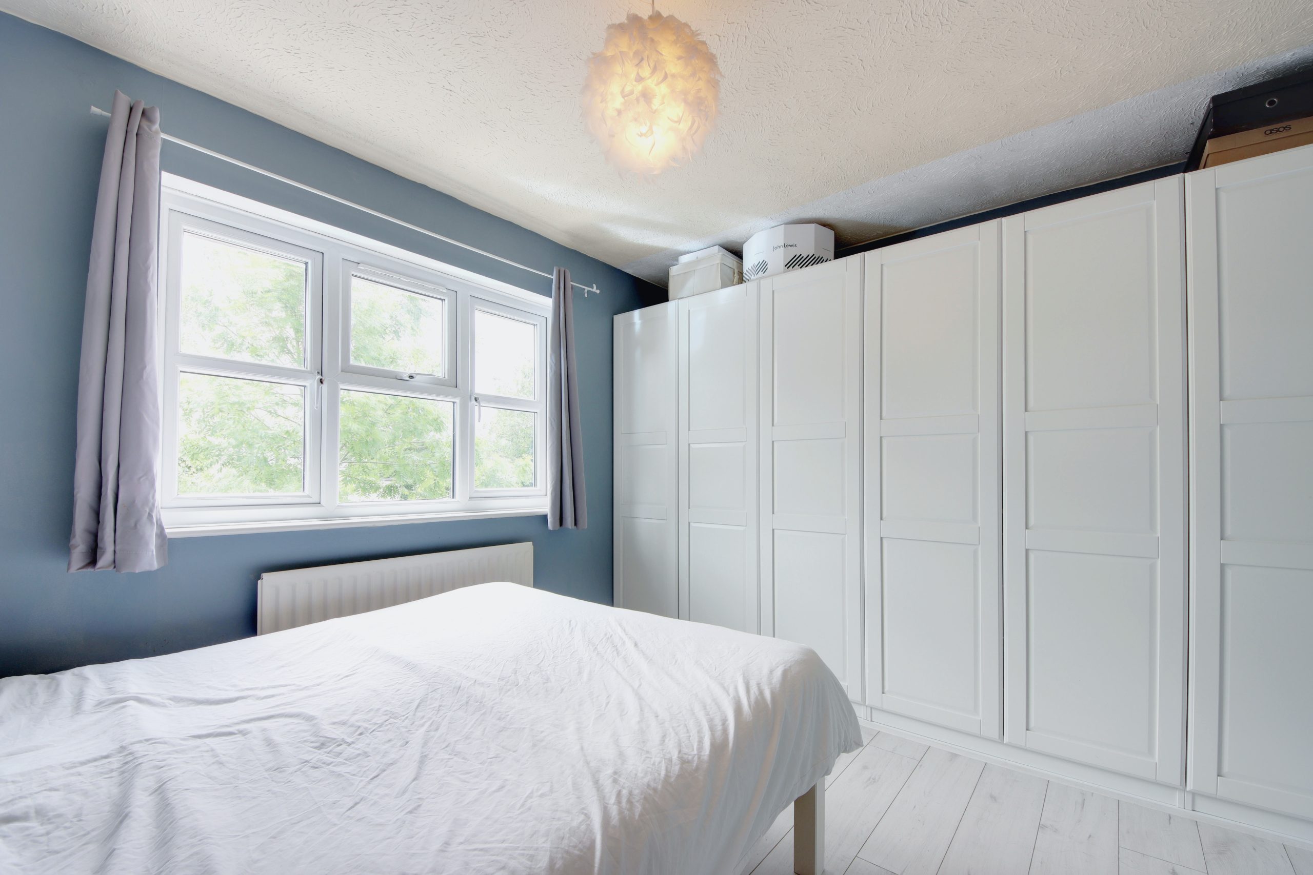 Stairs rise to the first floor where a landing permits access to two bedrooms and a family bathroom. The main bedroom measures at an impressive 11ft and comes equipped with ample storage through built-in cabinetry.