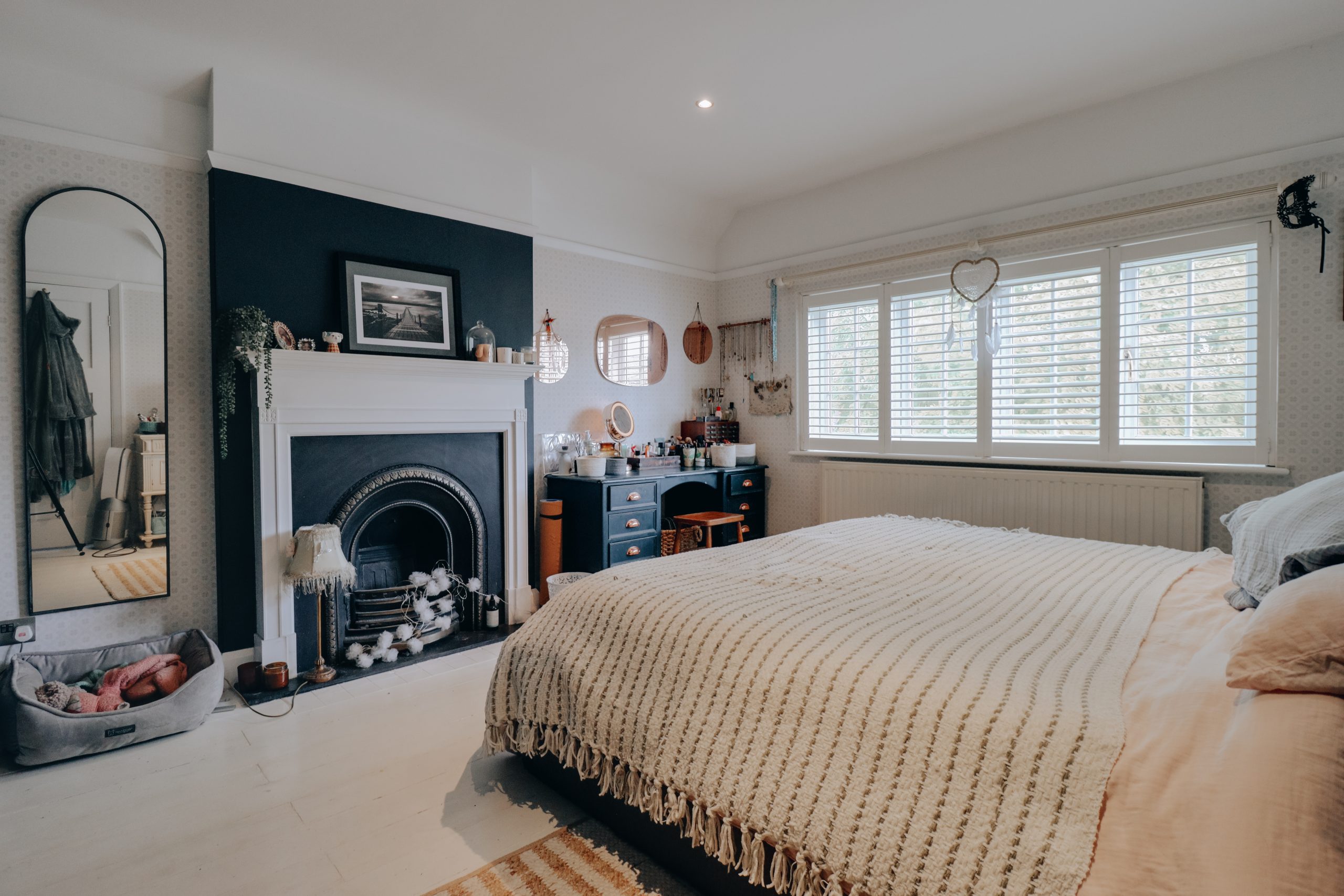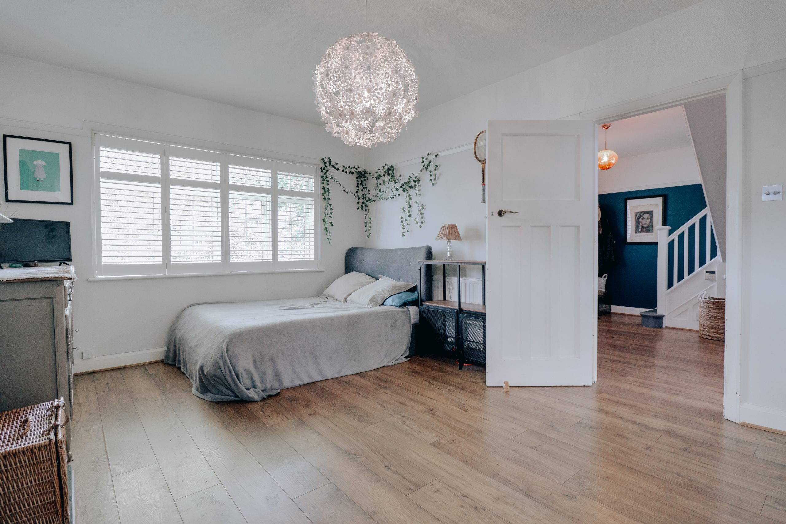 Upstairs, the house continues to charm with a wonderfully generous landing - a feature seldom found in homes of this style and size, lending a real sense of openness and light to the first floor. From here, three well-proportioned bedrooms unfold, each with its own character and outlook. The main bedroom is thoughtfully designed, with bespoke cabinetry running the length of one wall, providing excellent storage while framing the room’s striking feature chimney stack; a detail that adds both character and architectural interest. The remaining bedrooms offer flexibility, easily serving as children’s rooms, guest accommodation, or a home office depending on need. The family bathroom is well-appointed, with a contemporary walk-in shower enclosure that brings a touch of modern convenience to this otherwise classically arranged floor.