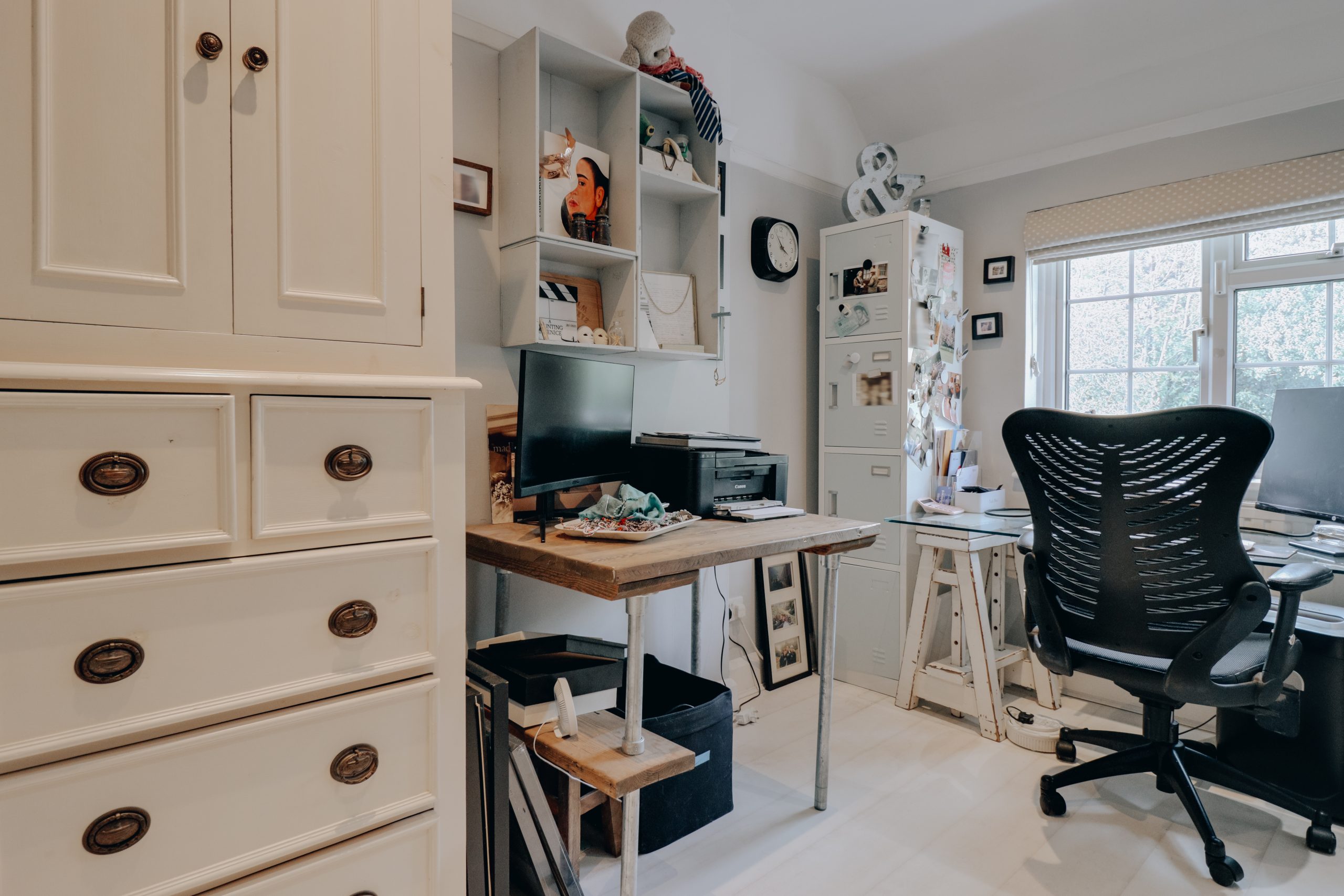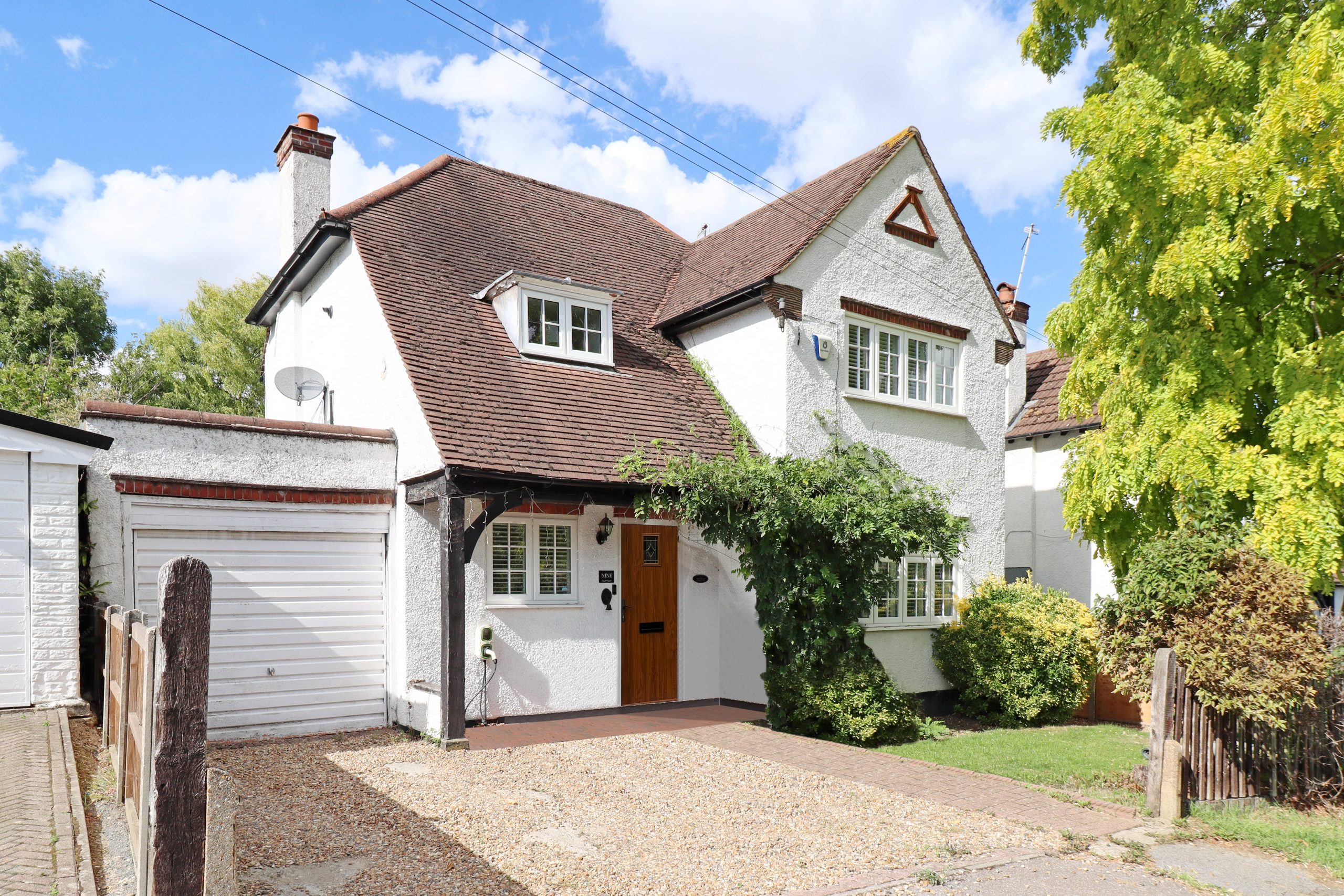 Standing proudly on the highly coveted Bournehall Lane, this extraordinary three-bedroom Arts and Crafts-style residence is a true celebration of individuality and design flair. Originally built in the early 20th century and thoughtfully extended, the home now unfolds across 1,685 sq.ft of exquisitely considered living space, its layout and finish clearly shaped by a discerning eye from within the creative world. The façade is instantly captivating; a soft, neutral painted pebble-dash exterior, a sweeping catslide roofline, and a veil of established wisteria combine to create timeless kerb appeal. Step to the rear and the aesthetic transforms: striking black, powder-coated aluminium doors, crafted in homage to the original Crittall style, open the home to its gardens, while plentiful skylights pour light deep into the plan. The interiors balance character with contemporary maximalism; layered textures, bold expressions of colour, and spaces designed for both performance and retreat. Practicality has not been overlooked: the front driveway offers generous off-street parking with an EV charging point, while the garage (also accessible internally) provides valuable storage or the potential for further transformation to suit future needs.