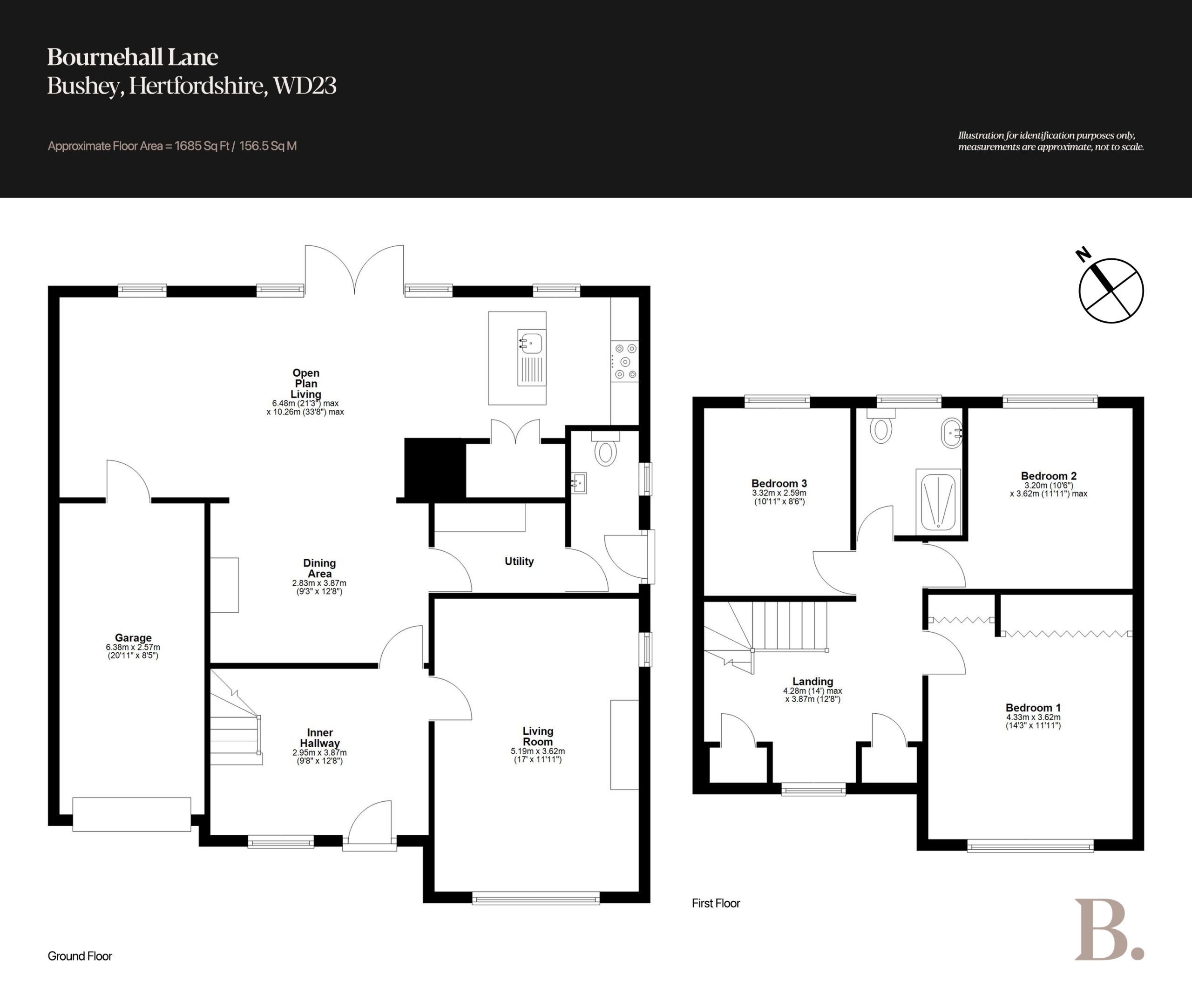 Standing proudly on the highly coveted Bournehall Lane, this extraordinary three-bedroom Arts and Crafts-style residence is a true celebration of individuality and design flair. Originally built in the early 20th century and thoughtfully extended, the home now unfolds across 1,685 sq.ft of exquisitely considered living space, its layout and finish clearly shaped by a discerning eye from within the creative world. The façade is instantly captivating; a soft, neutral painted pebble-dash exterior, a sweeping catslide roofline, and a veil of established wisteria combine to create timeless kerb appeal. Step to the rear and the aesthetic transforms: striking black, powder-coated aluminium doors, crafted in homage to the original Crittall style, open the home to its gardens, while plentiful skylights pour light deep into the plan. The interiors balance character with contemporary maximalism; layered textures, bold expressions of colour, and spaces designed for both performance and retreat. Practicality has not been overlooked: the front driveway offers generous off-street parking with an EV charging point, while the garage (also accessible internally) provides valuable storage or the potential for further transformation to suit future needs.
