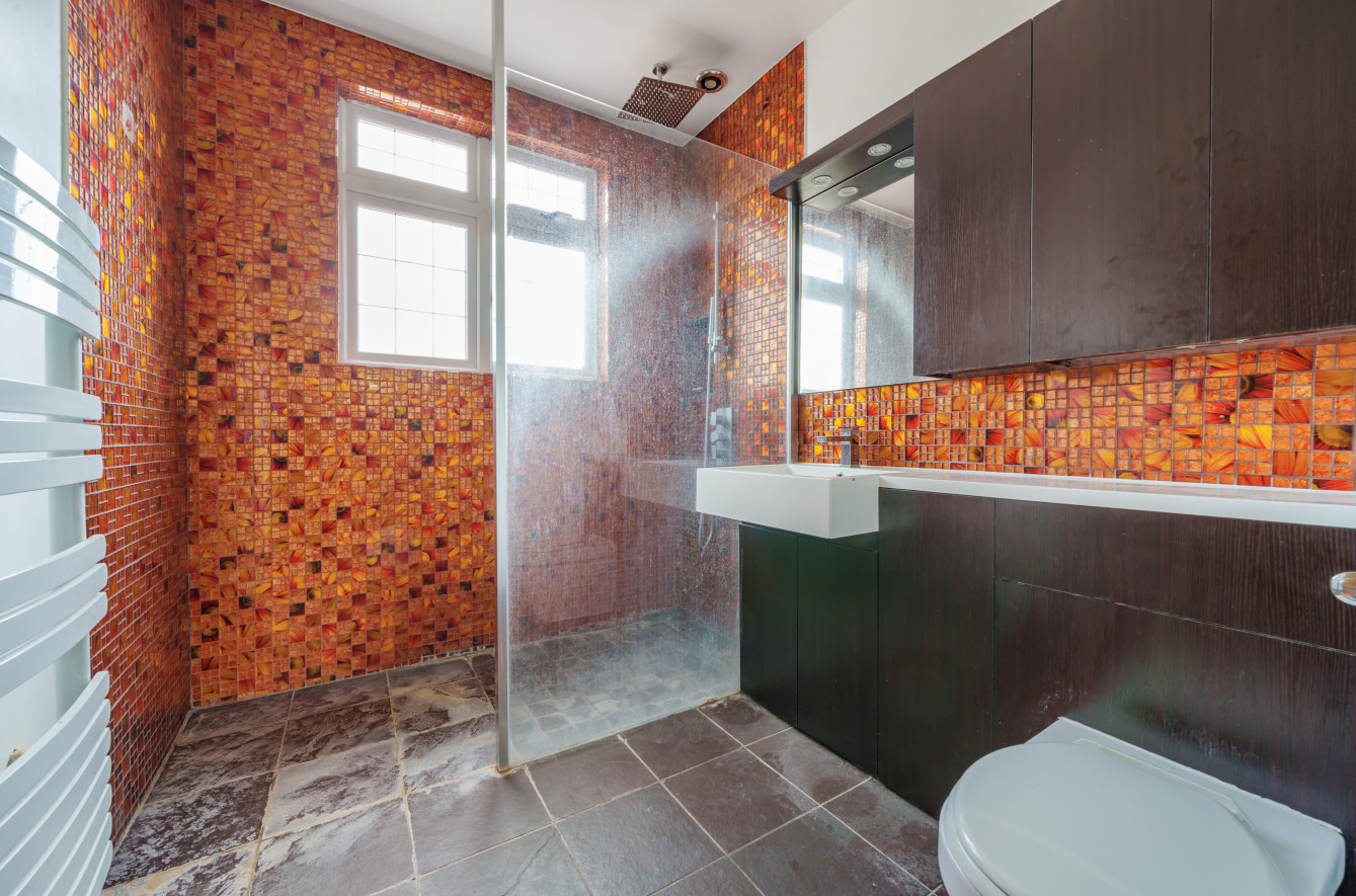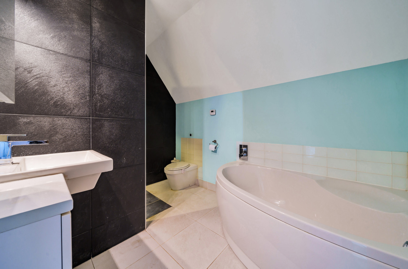 A staircase ascends to the first floor, where a spacious landing offers access to three bedrooms and a family bathroom. The main bedroom measures at an impressive 13ft and comes equipped with a contemporary wet-room, finished floor-to-ceiling in tile.