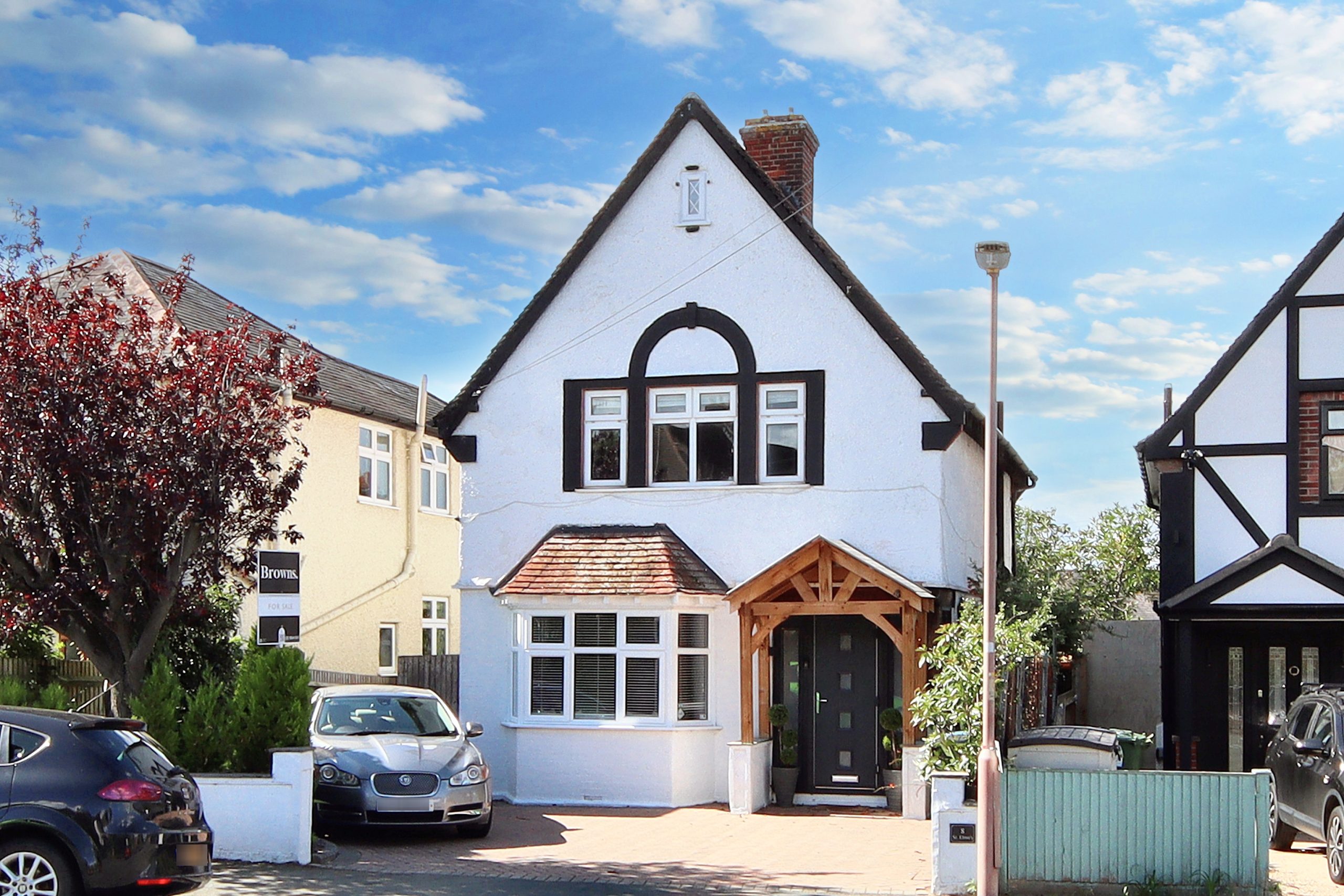Perfectly positioned on Bucks Avenue, just a short walk from Bushey Station (with a swift 17-minute journey to London Euston), this exceptional three-bedroom detached family home seamlessly blends timeless charm with untapped potential. The property’s attractive façade, finished in crisp white render, features a distinctive gable roof and an elegant oak-framed doorway, all framed by a meticulously maintained front garden with side-gate access on both sides and allocated parking for two vehicles.