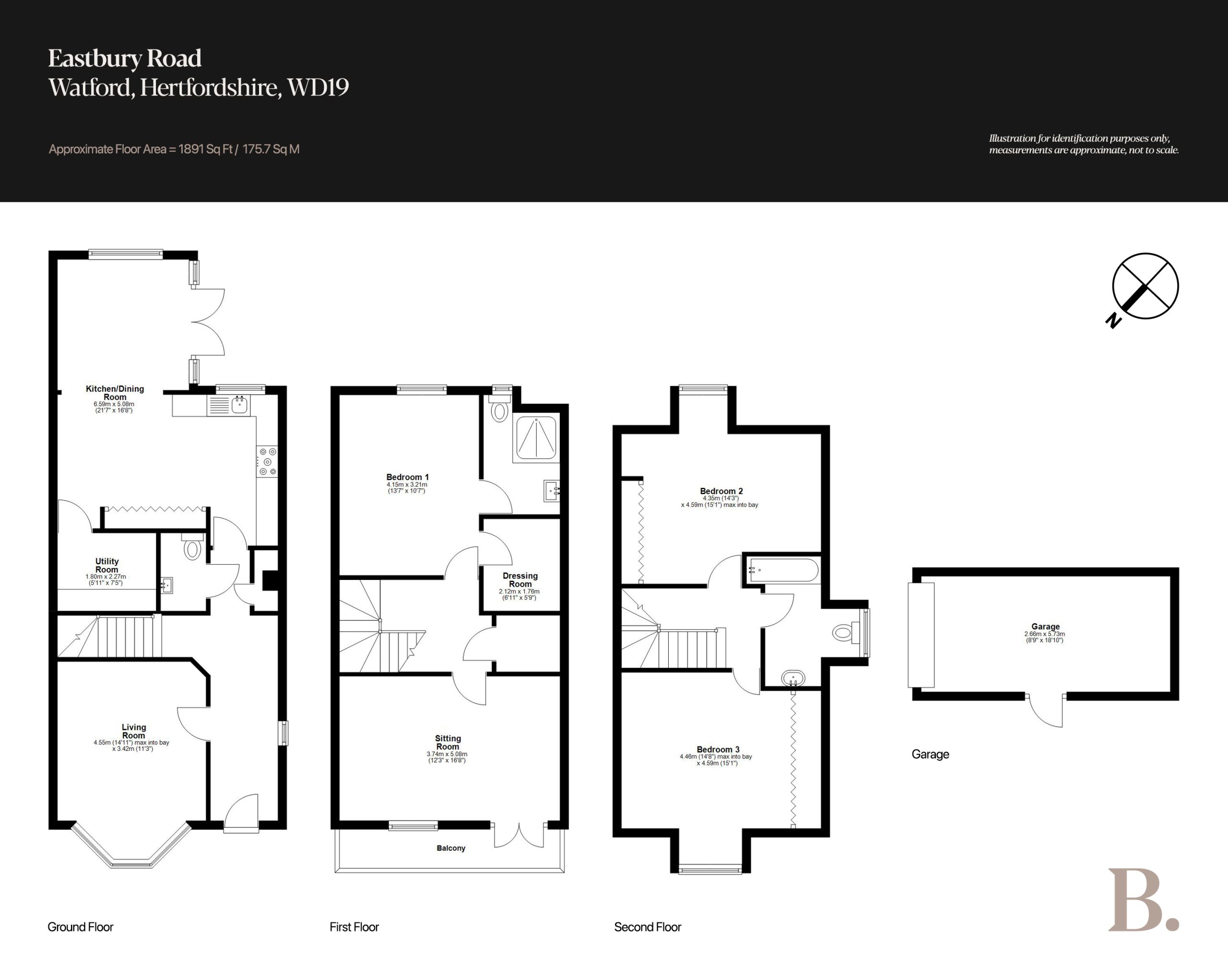 Occupying a prominent position along the ever convenient Eastbury Road, with uninterrupted views across Oxhey Park, this exceptional three bedroom end of terrace townhouse, easily adaptable to four bedrooms by utilising one of the generous reception rooms, has been comprehensively refurbished to deliver the very definition of contemporary family living. Since 2004, the current owners have poured careful thought and investment into its transformation, most notably introducing a statement kitchen that anchors the home with style and substance. Extending to almost 1,900 sq.ft across three beautifully arranged floors, the accommodation is as considered as it is versatile, further enhanced by a partially boarded loft providing valuable additional storage. Externally, the red brick façade is softened by a refined neutral render at ground level, while the symmetrical first floor balcony framed by sleek glass balustrades adds a crisp architectural flourish. To the rear, secure gated access reveals off street parking for two vehicles in front of a garage complete with an electric roller shutter door and EV charging provision.