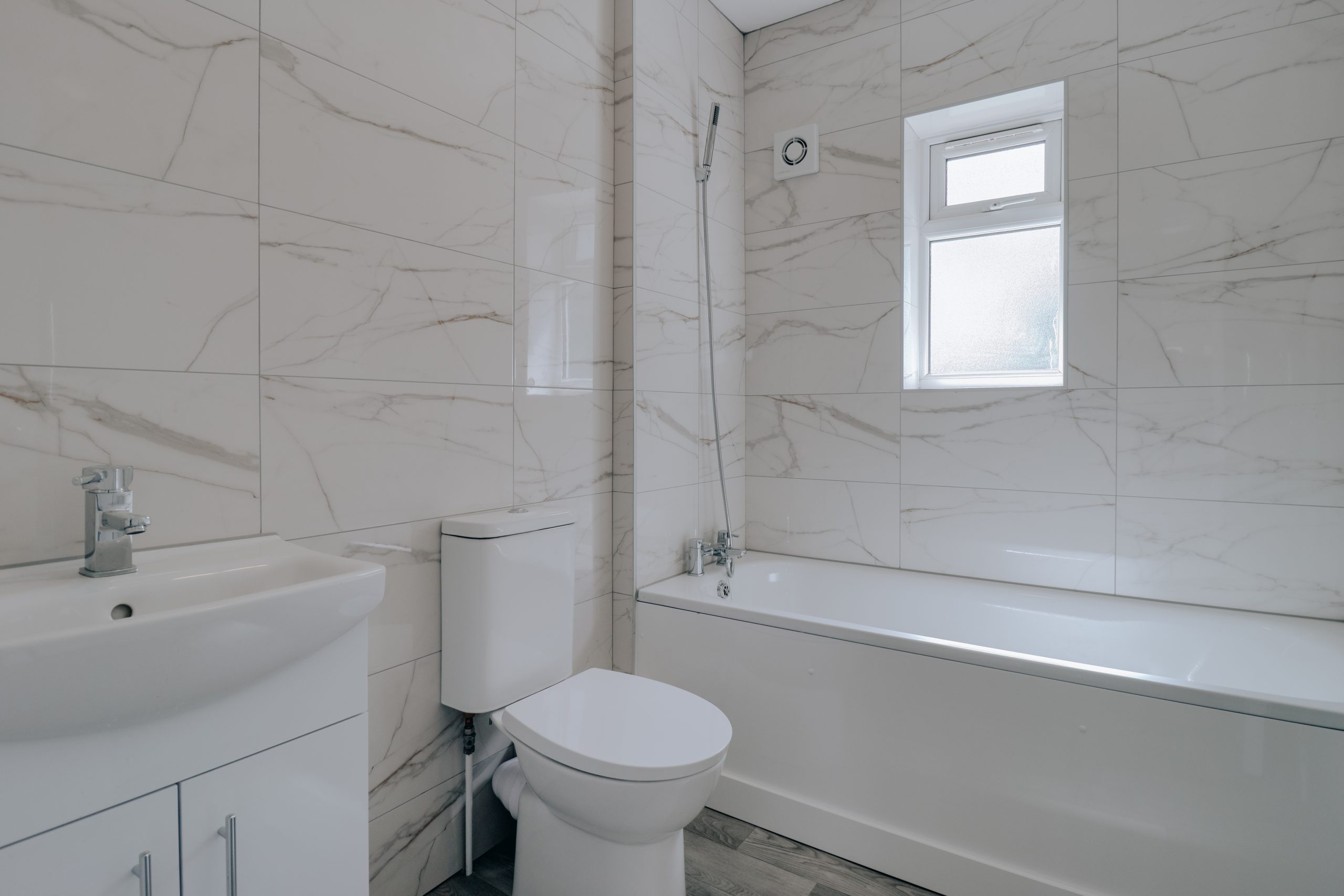 Step into a bright and inviting hallway - almost open-plan in feel - that flows effortlessly toward the landing, offering easy access to each room. To the right, the thoughtfully designed galley-style kitchen features sleek grey J-pull cabinetry, integrated appliances, and a well-considered layout that maximises both form and function The easterly-facing reception room is bathed in morning light, enhanced by a charming bay window that creates a natural sun trap - an ideal setting for relaxed evenings or entertaining guests. The principal bedroom is particularly spacious, measuring 11’3” x 8’10”, with large windows that flood the room with natural light and provide ample space for freestanding furniture. A second double bedroom offers excellent versatility, while a third single bedroom is perfect as a nursery or dedicated home office. Completing the home is a stylish, contemporary family bathroom, finished to a high standard with sleek fixtures and full-height tiling throughout.