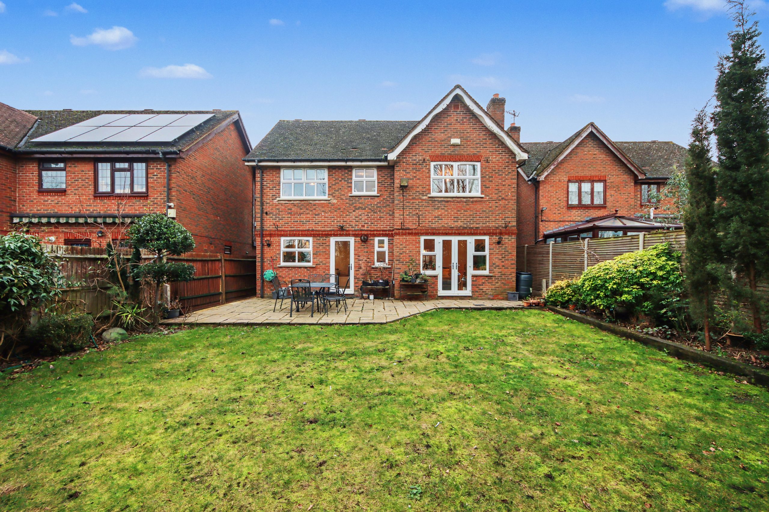 To the rear, the house opens onto a private west-facing garden. Paved areas transition naturally into lawn, creating a simple, low-maintenance outdoor space that enjoys afternoon and evening sun.