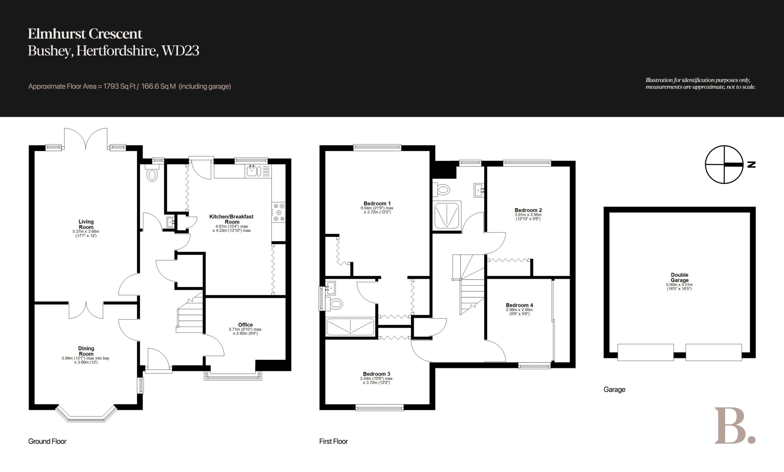 Tucked away just north of Bushey’s picturesque village, Elmhurst Close is a quiet and highly regarded residential cul-de-sac, providing an ideal setting for this well-proportioned four-bedroom, two-bathroom detached home. Presented in excellent order throughout, the house is perfectly ready for its next owners to move straight in and enjoy. The exterior is smart and timeless, with red brick elevations laid in stretcher bond and a characterful Dutch gable, all set behind a neatly maintained, low-maintenance front garden. Off-street parking is provided to the front of a detached double garage (a genuine rarity for this part of Bushey) with the added benefit of side access.