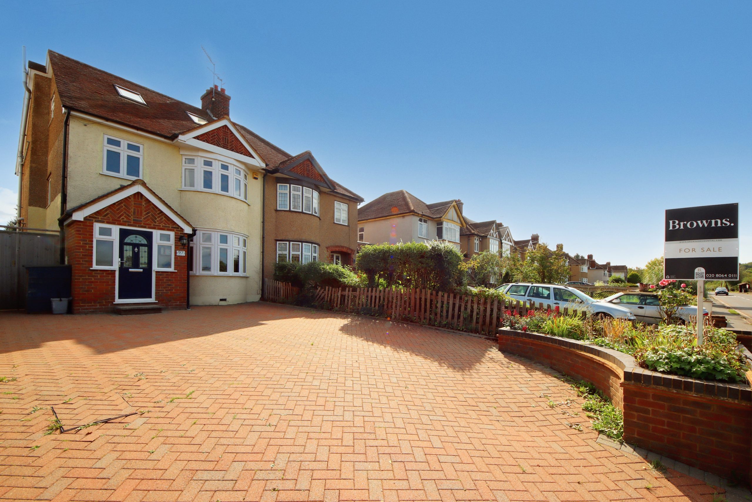 Ideally situated on Hampermill Lane, this four bedroom semi-detached house has been the subject of a sensible renovation in recent years. The house’s façade, typical of a 1930's design is pebble-dashed, punctuated by large bay windows, a feature porch and decorative, exposed-brick gables. It is set back from the road with off street parking for several cars and side-access to the south-easterly facing rear garden.