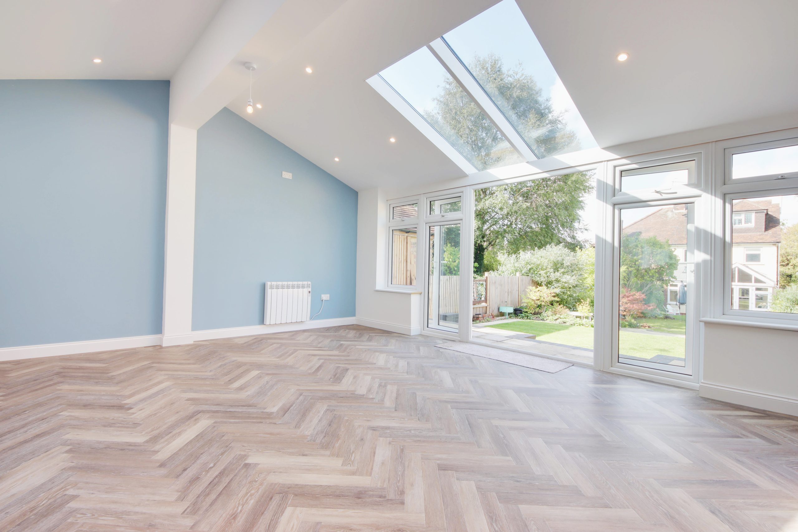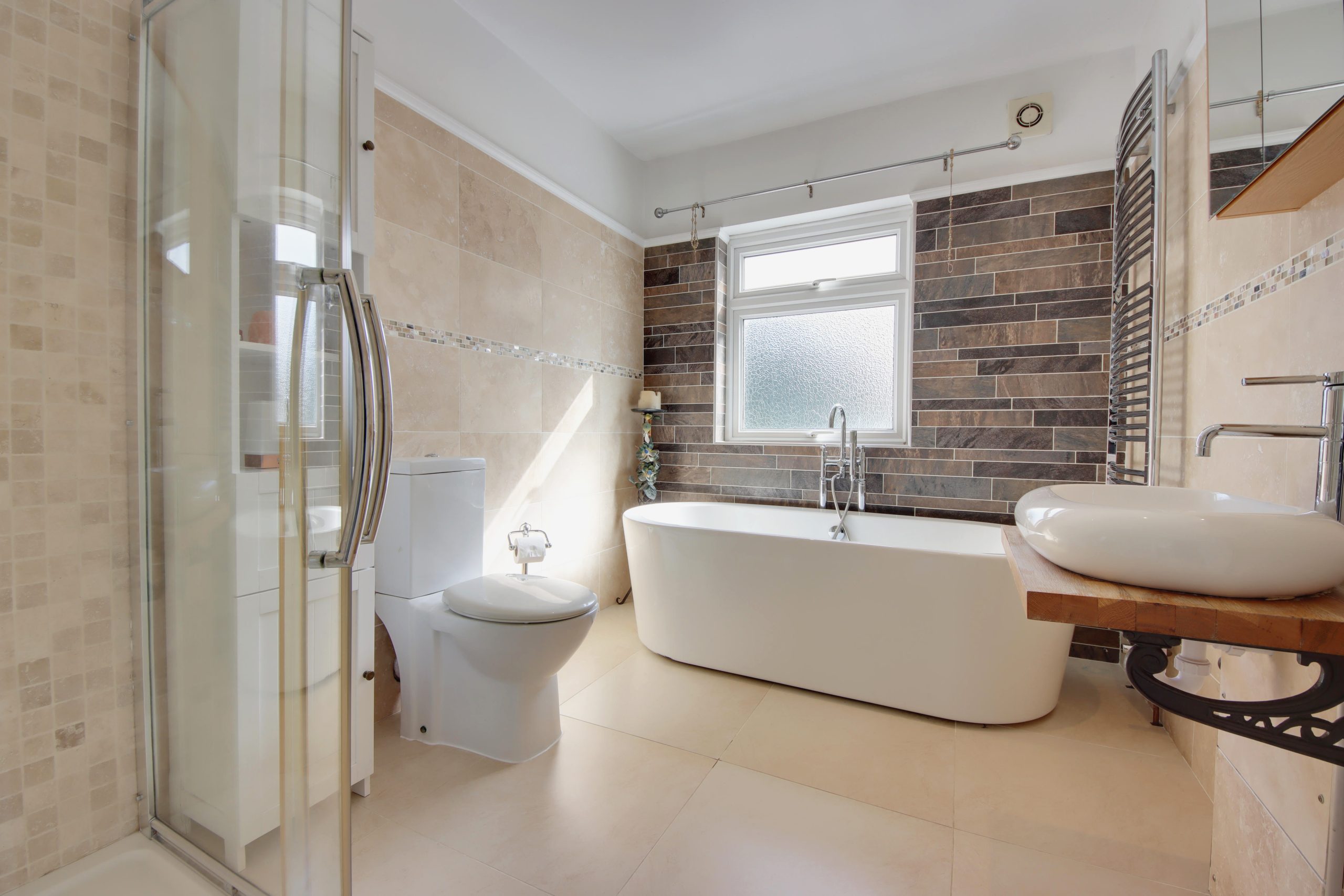 Upon entering the residence, you are immediately greeted by a spacious hallway, conveniently providing access to all ground floor living areas. To the right, a 14ft, tranquil living room is situated at the front of the plan where a generous bay window with serves as the focal point. The 26ft, open-plan kitchen/diner unfolds towards the rear of the plan; topped with neutral, laminate worktops, the kitchen’s comprehensive range of wooden cabinetry and appliances are laid out so everything is within easy reach. The dining area sits beyond the kitchen, illuminated by spotlights and a feature glazed gable; access to the garden is offered via French-doors.