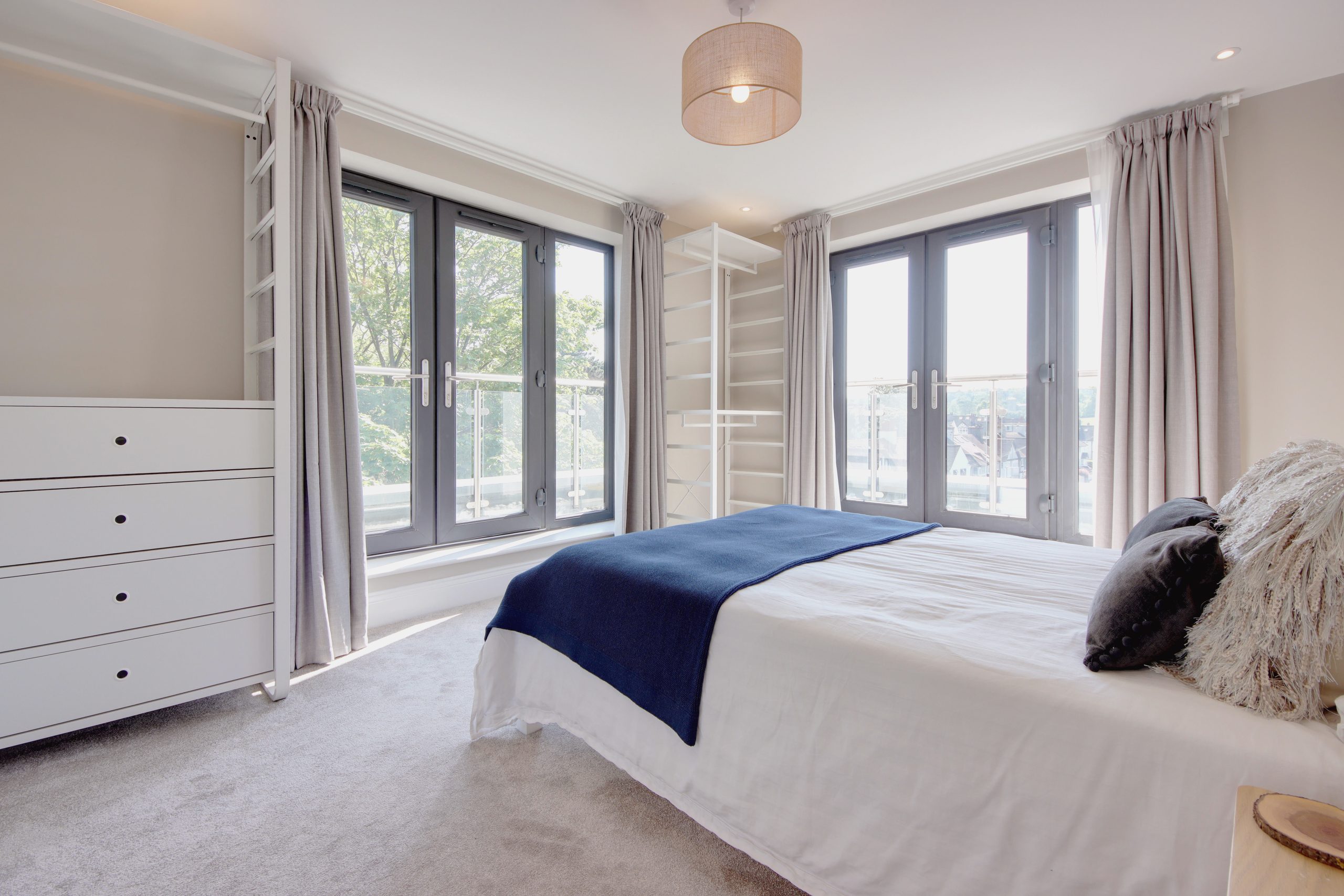 Set on the third floor of The Vault, a contemporary building completed in 2020, this beautifully proportioned one-bedroom apartment is defined by light, outlook and a strong sense of space. Dual-aspect glazing features throughout, drawing in natural light from morning through to evening, while a private wrap-around balcony provides far-reaching, 180-degree views across the surrounding neighbourhood. The apartment is ideally positioned within easy walking distance of Bushey Station, offering direct connections into Central London, and moments from a curated mix of independent cafés, bars and restaurants, all framed by nearby green spaces.