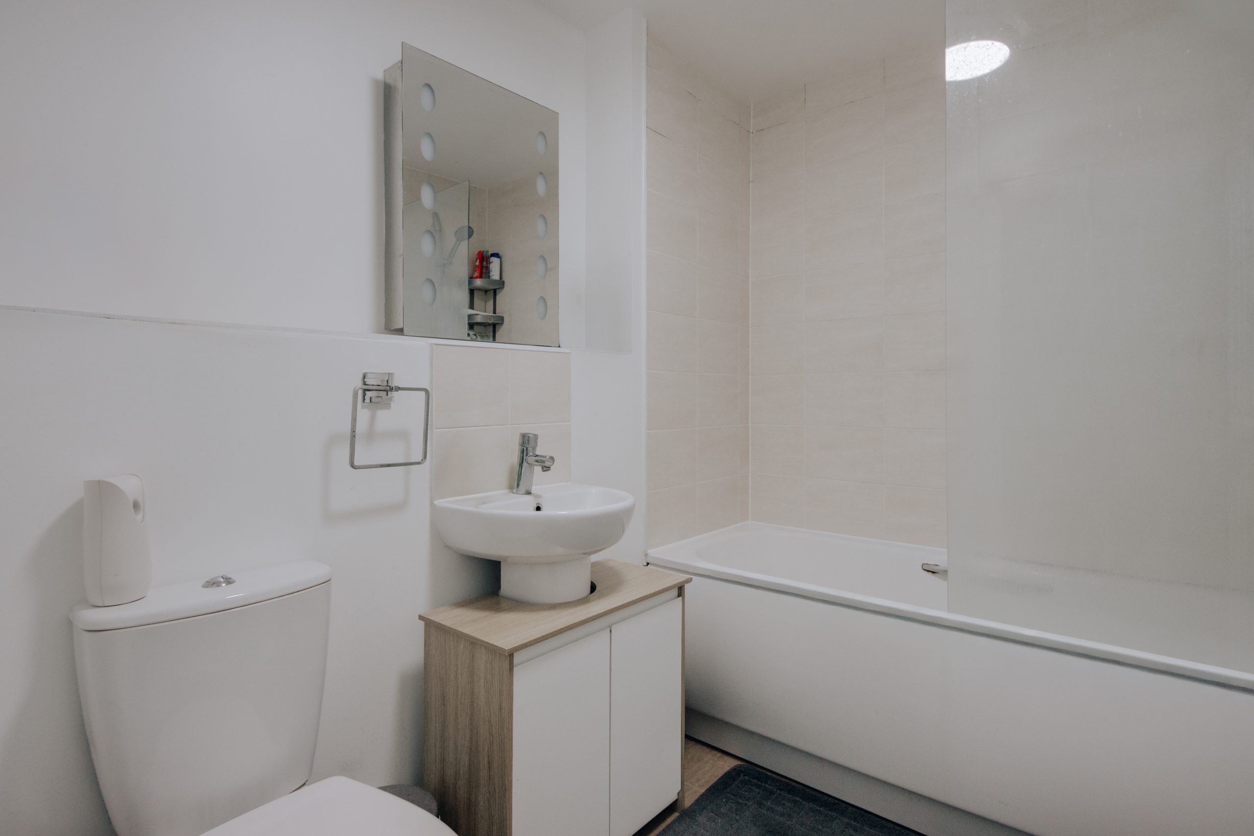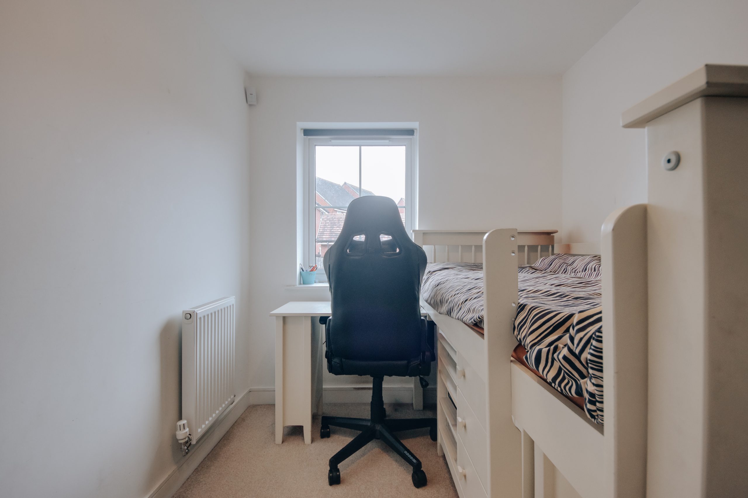 Upstairs, there are three bedrooms, all light and simply finished. The main bedroom is a good size with space for freestanding furniture, while the two additional rooms are well suited to children, guests or working from home. A modern family bathroom completes the first floor.