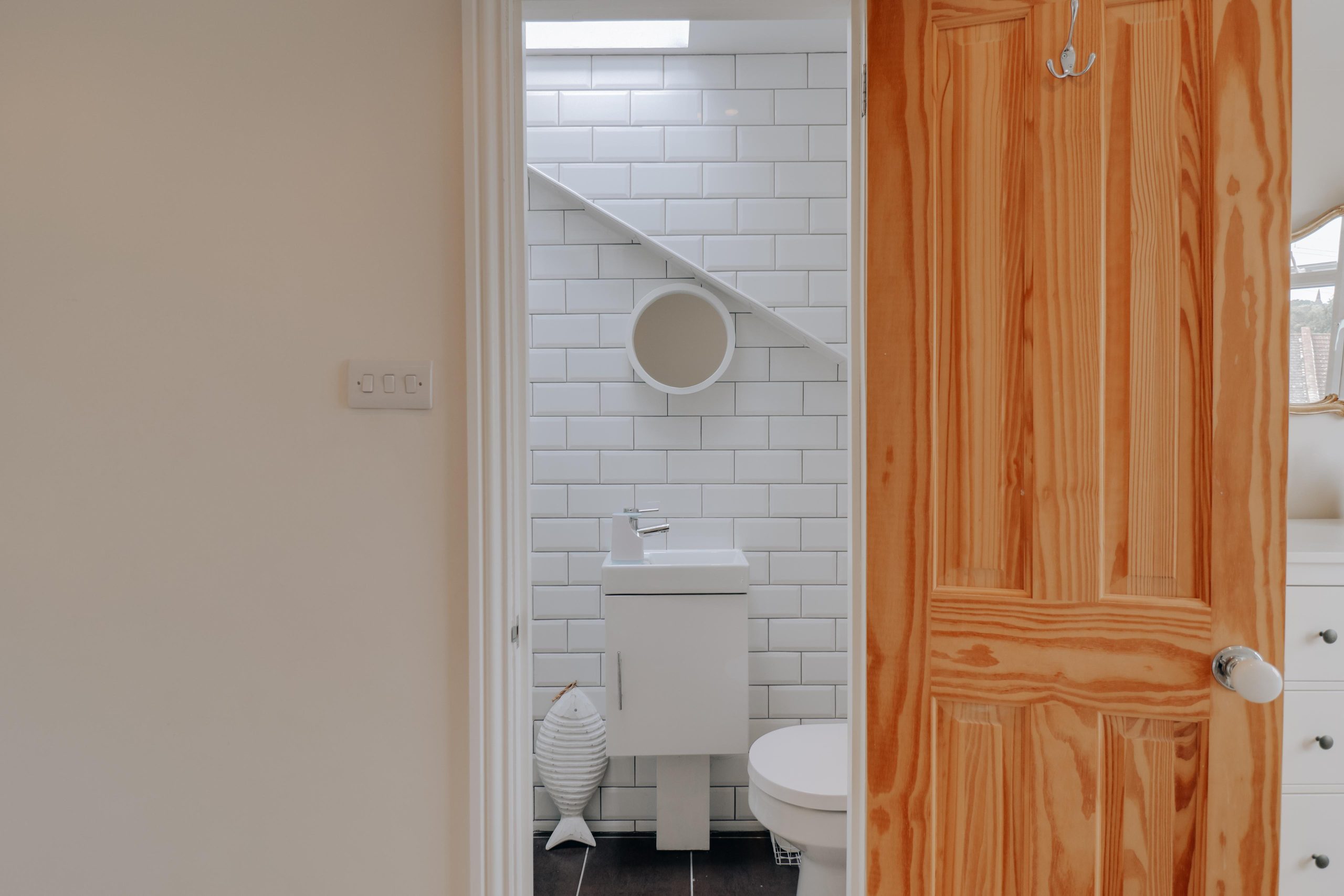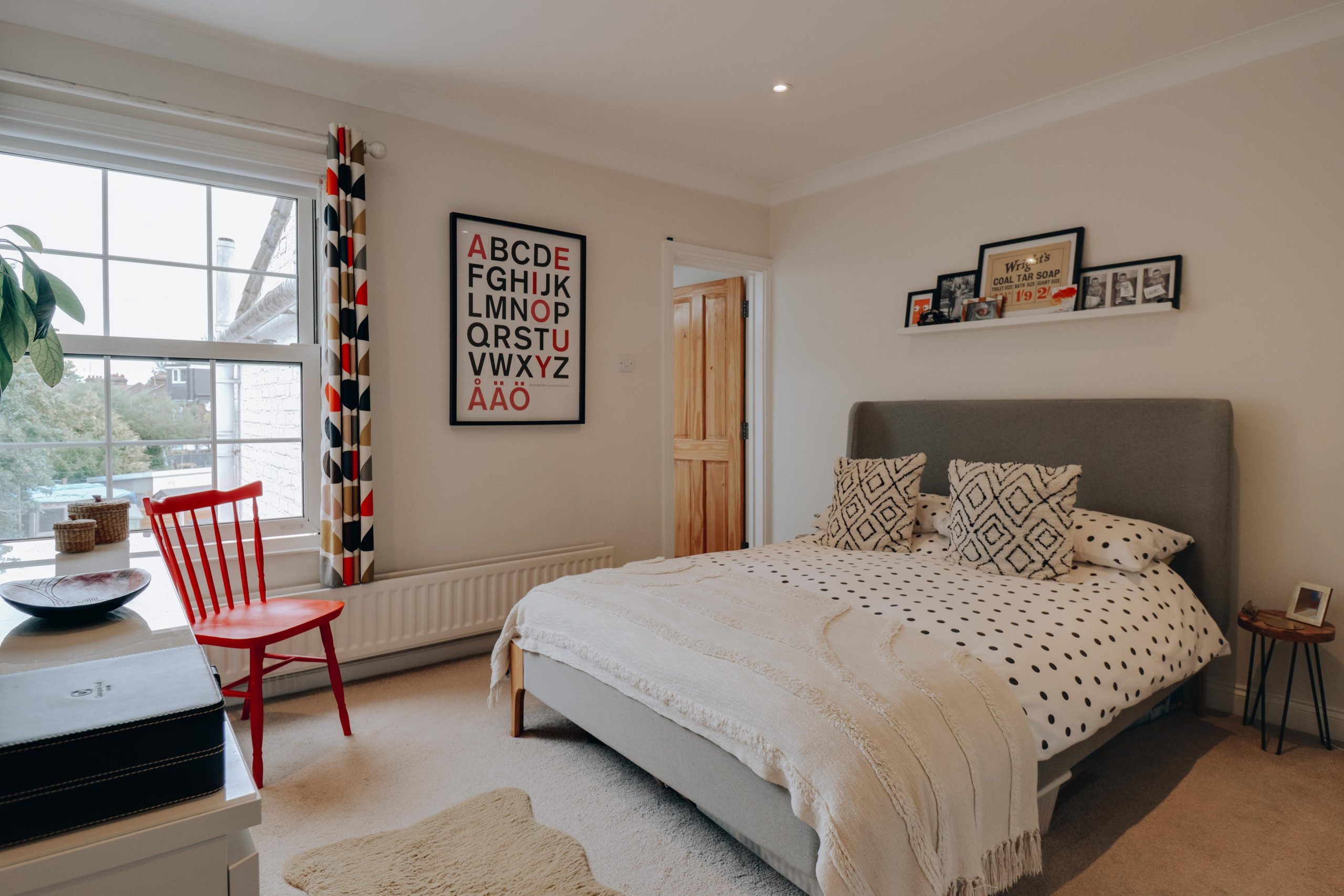 Upstairs, two bedrooms provide serene retreats, with soft neutral tones and ample room for freestanding furniture. The rear bedroom (previously the main) is enhanced by a stylish en-suite, finished to an exacting standard. Crowning the home is the principal suite; a dramatic top-floor sanctuary that runs almost the full depth of the house. With skylights, bespoke wardrobes, and a private en-suite shower room, it’s a masterclass in contemporary design, offering a luxurious yet tranquil space to retreat to at the end of the day.