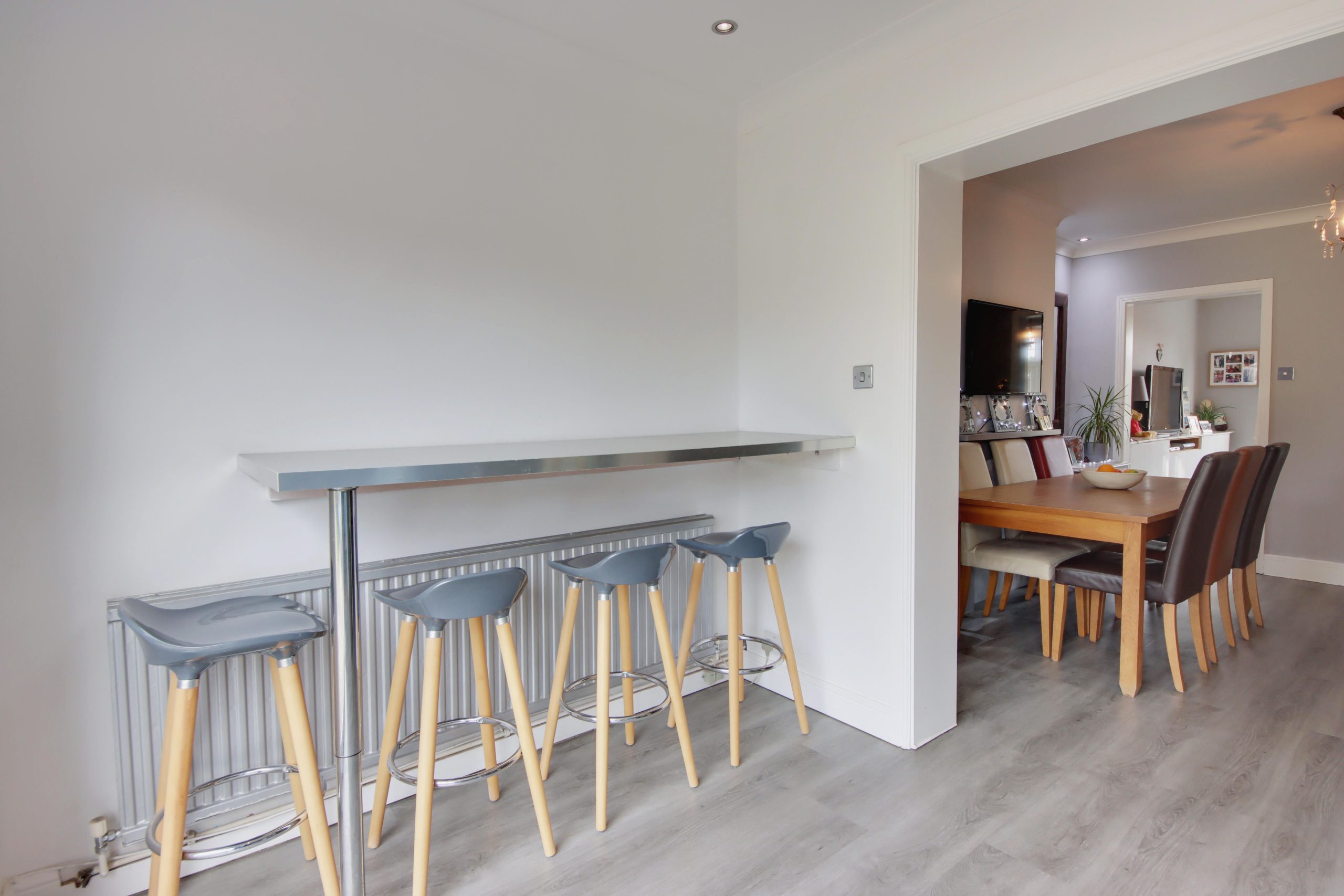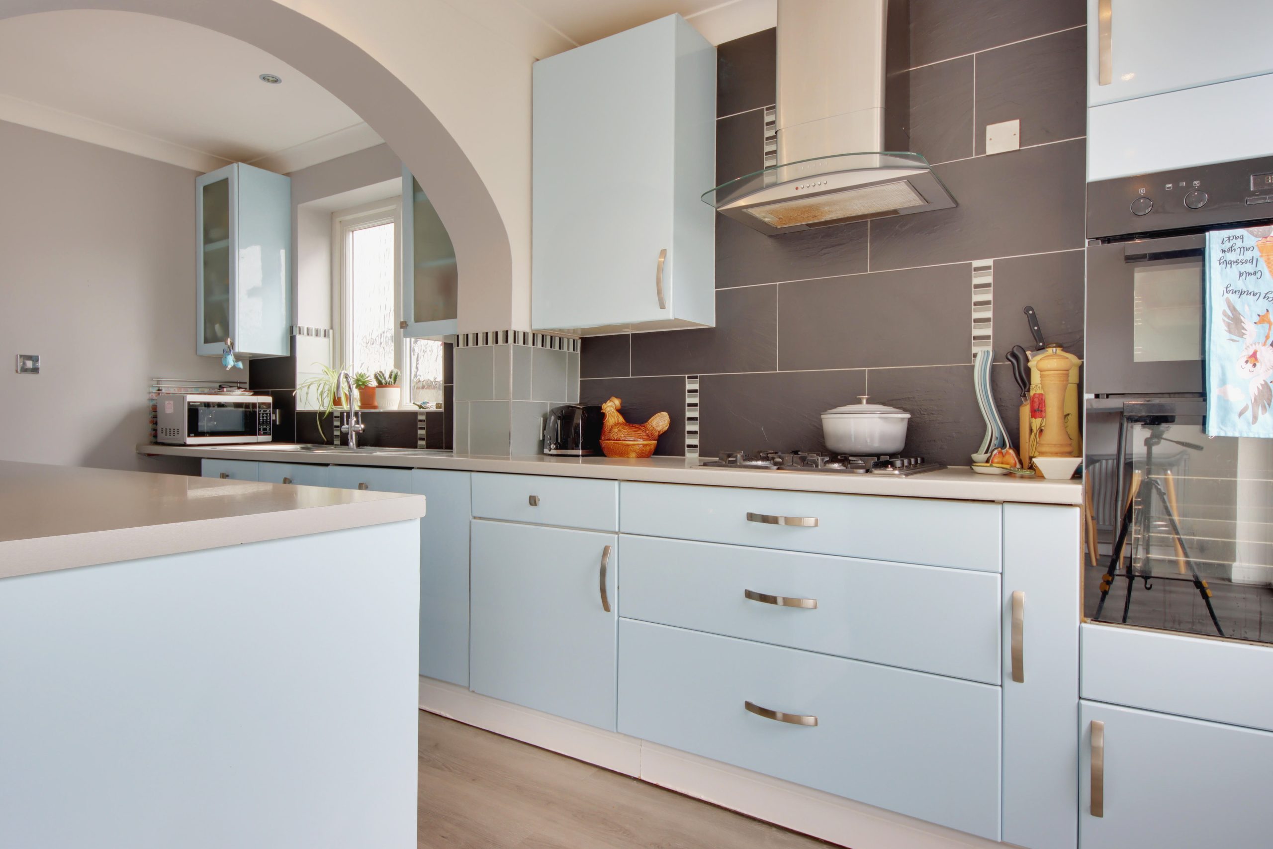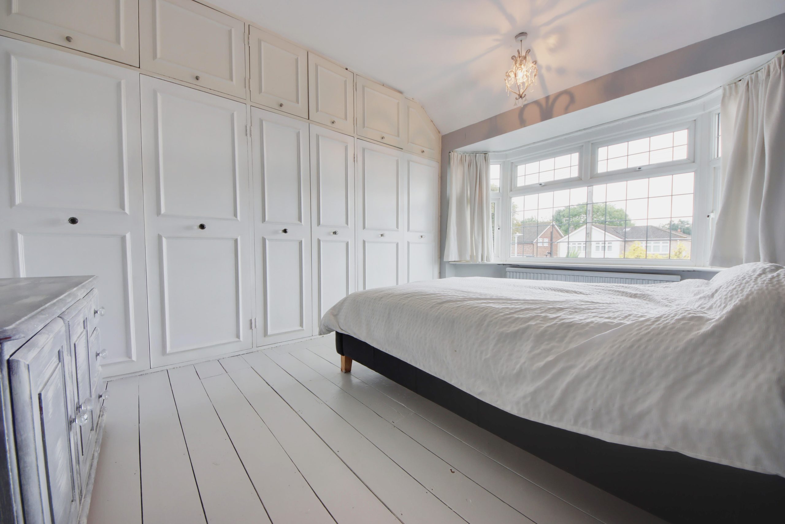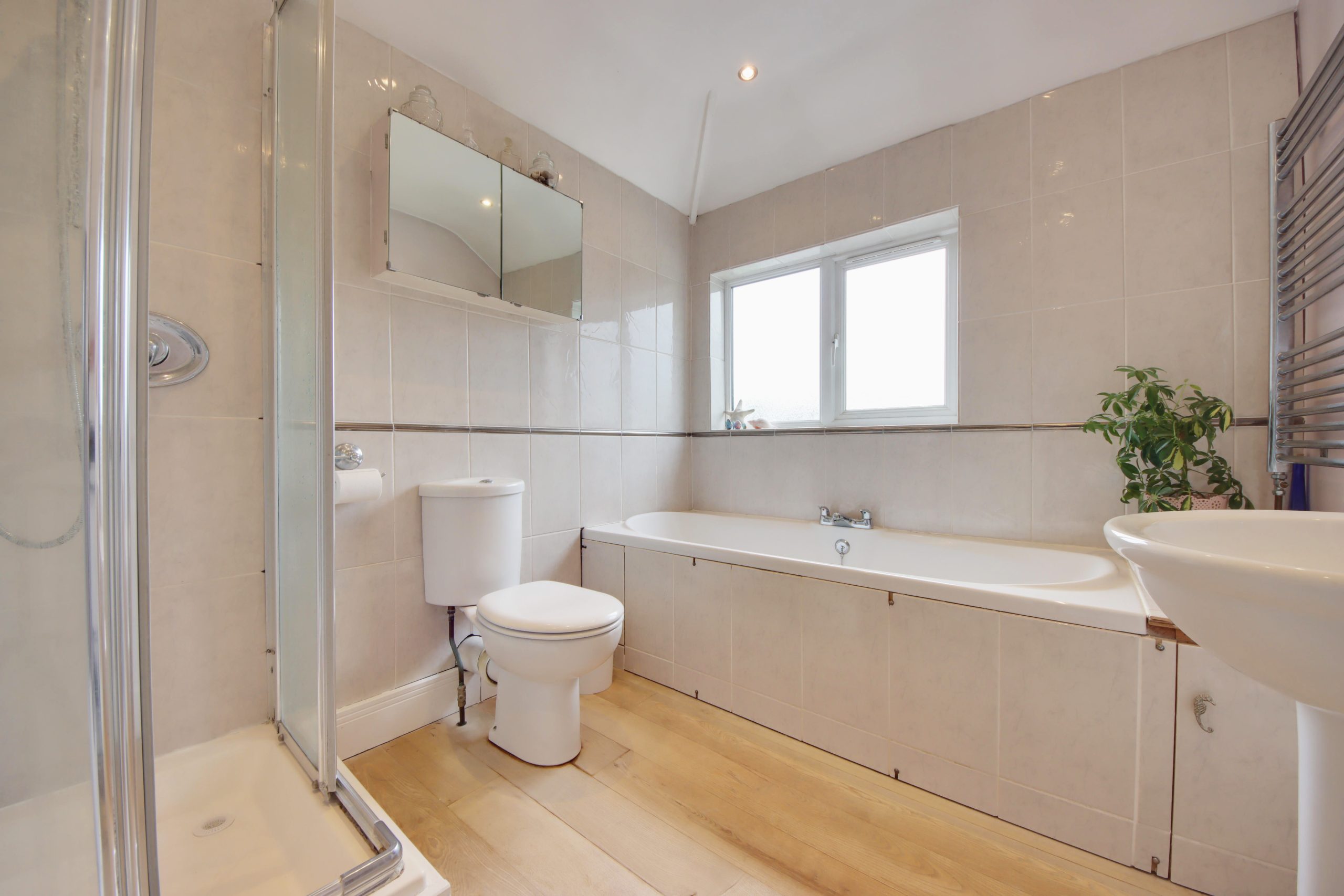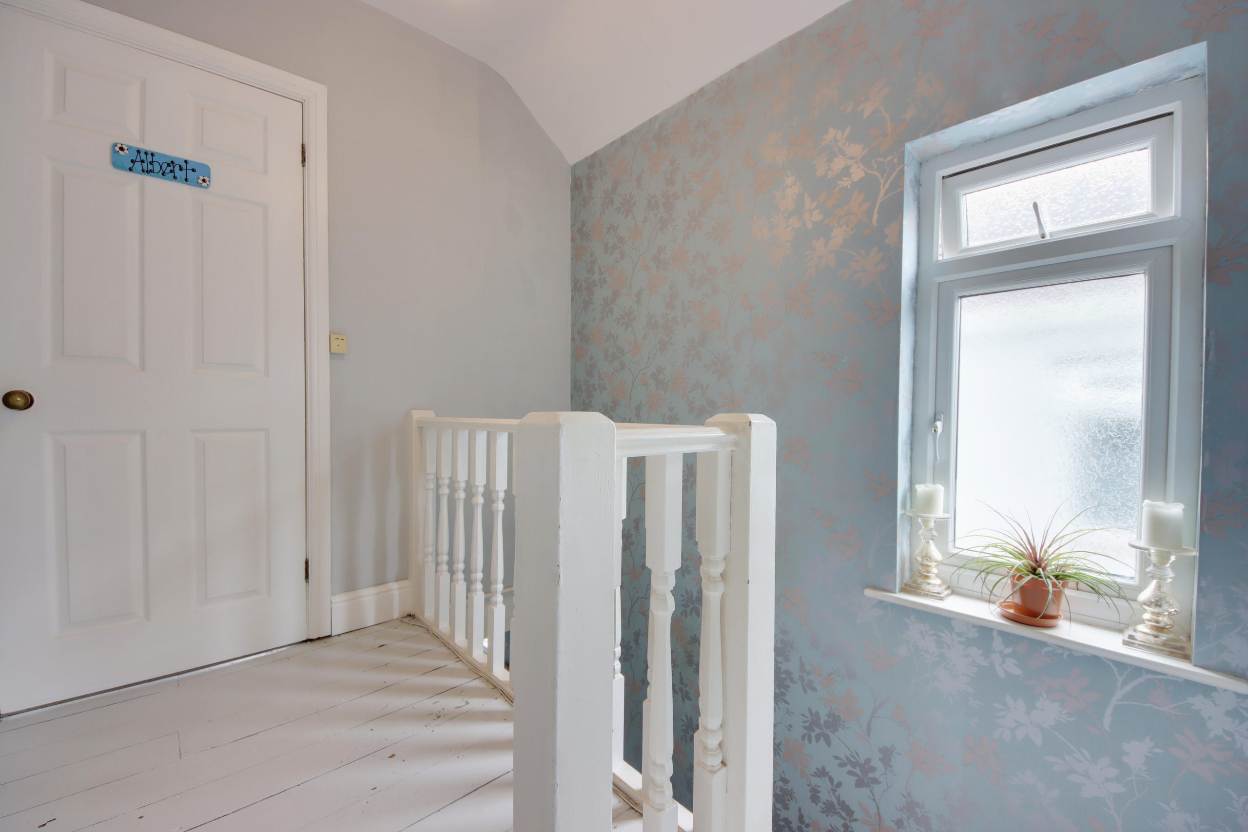 Upon entering the residence, you are immediately greeted by a spacious hallway, conveniently providing access to most of the ground floor living areas. To the right, a 12ft dining room sits in the centre of the plan and offers direct access to the tranquil, easterly-facing living room. A generous bay window serves as the focal point, whilst reinstated cornicing runs around the walls. The open-plan kitchen/diner unfolds towards the rear of the plan; topped with grey worktops, the kitchen’s comprehensive range of pastel-blue cabinetry and appliances (oven less than 12 months’ old) are laid out so everything is within easy reach. Completing the ground floor is a useful W.C.