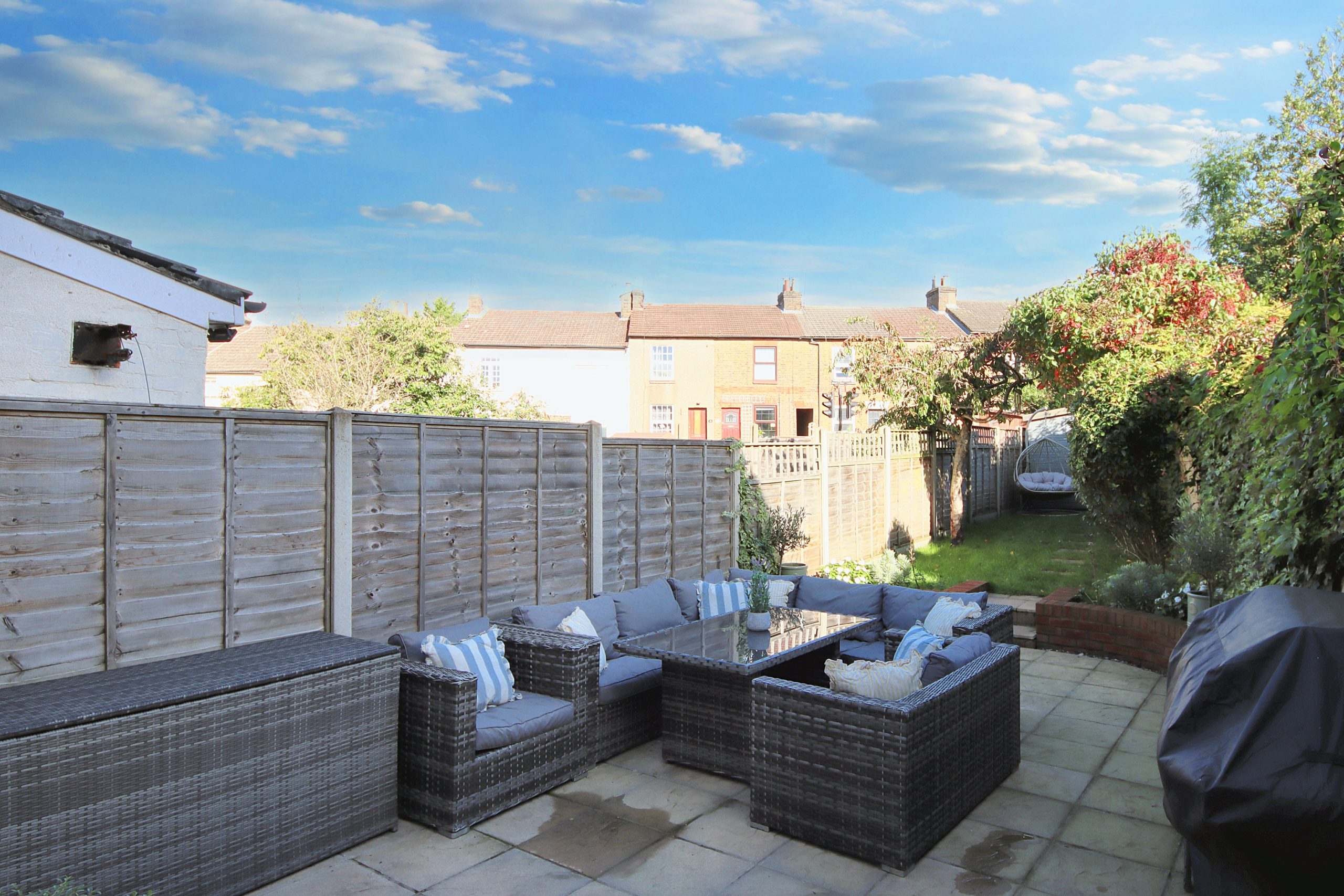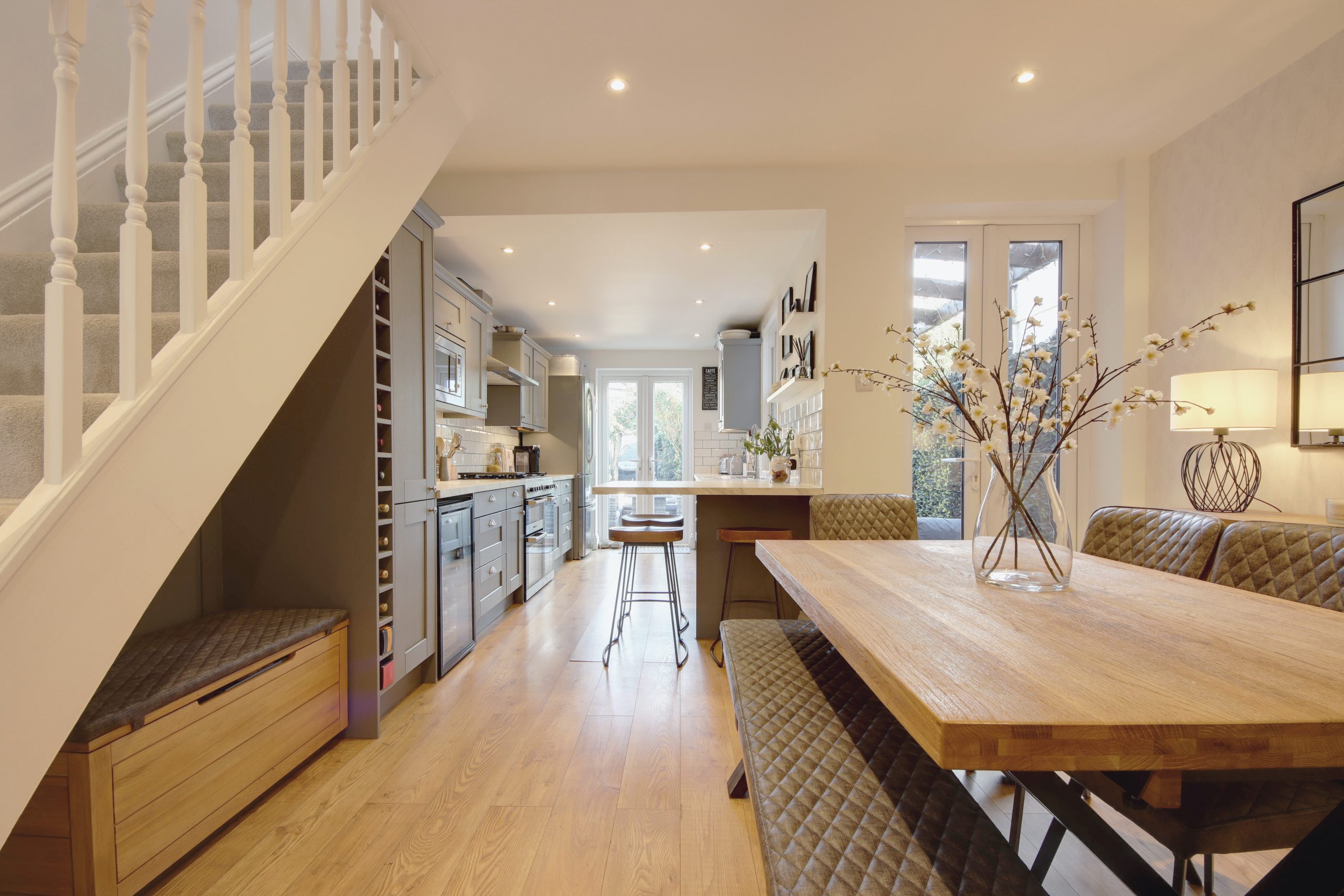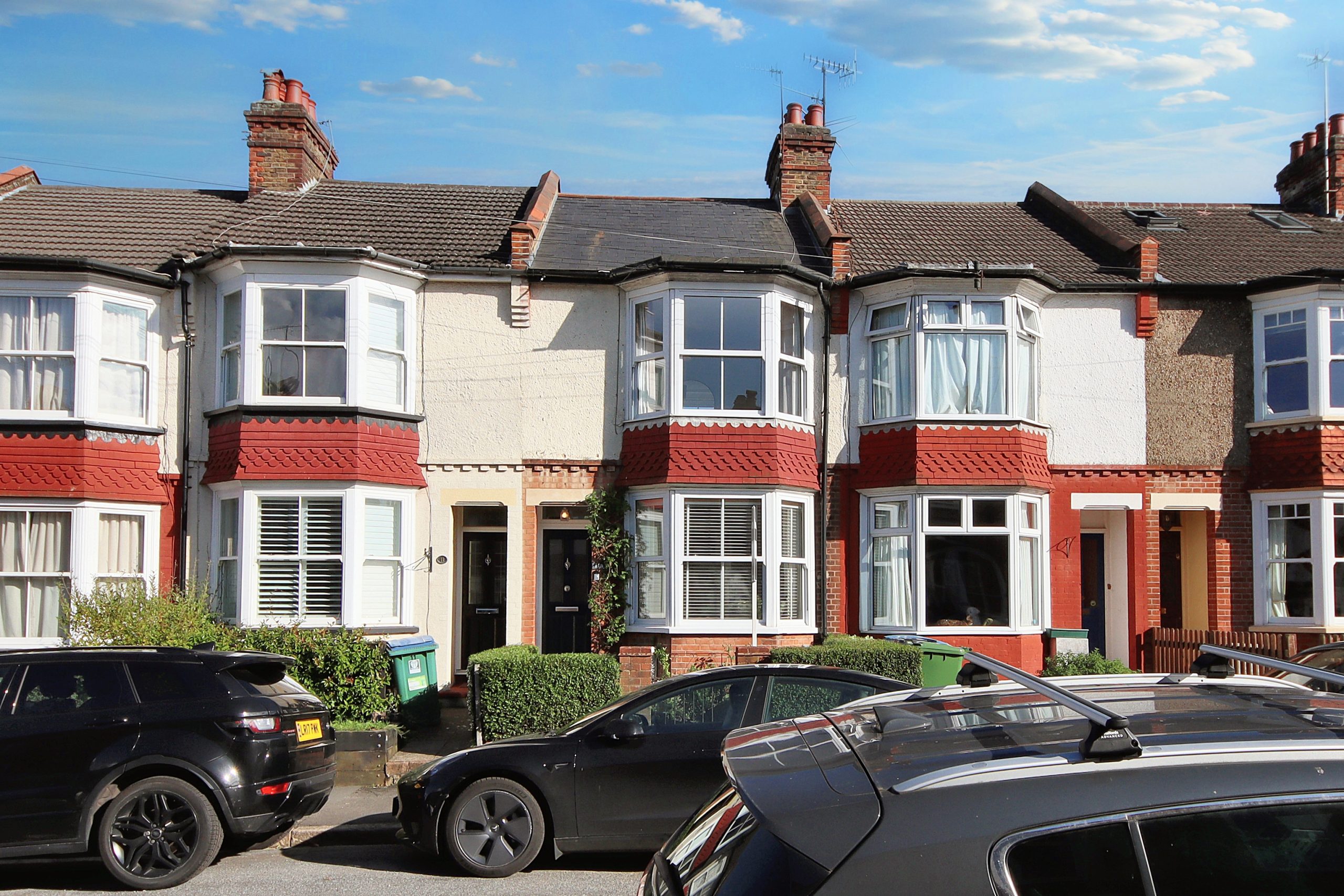 Nestled on the sought-after Oxhey Avenue, just a short stroll from Bushey Station (with direct trains to London Euston in just 17 minutes), this stunning three-bedroom, 914-square-foot terraced home offers move-in-ready perfection for discerning buyers. With an airy, neutral interior palette and thoughtfully placed glazing (including two sets of French doors and elegant bay windows) the home is flooded with natural light, creating a warm and inviting atmosphere throughout. The exterior is equally charming, boasting a timeless mix of London stock brick, red-tile cladding, and pebble-dash, all framed by a neatly landscaped front garden.