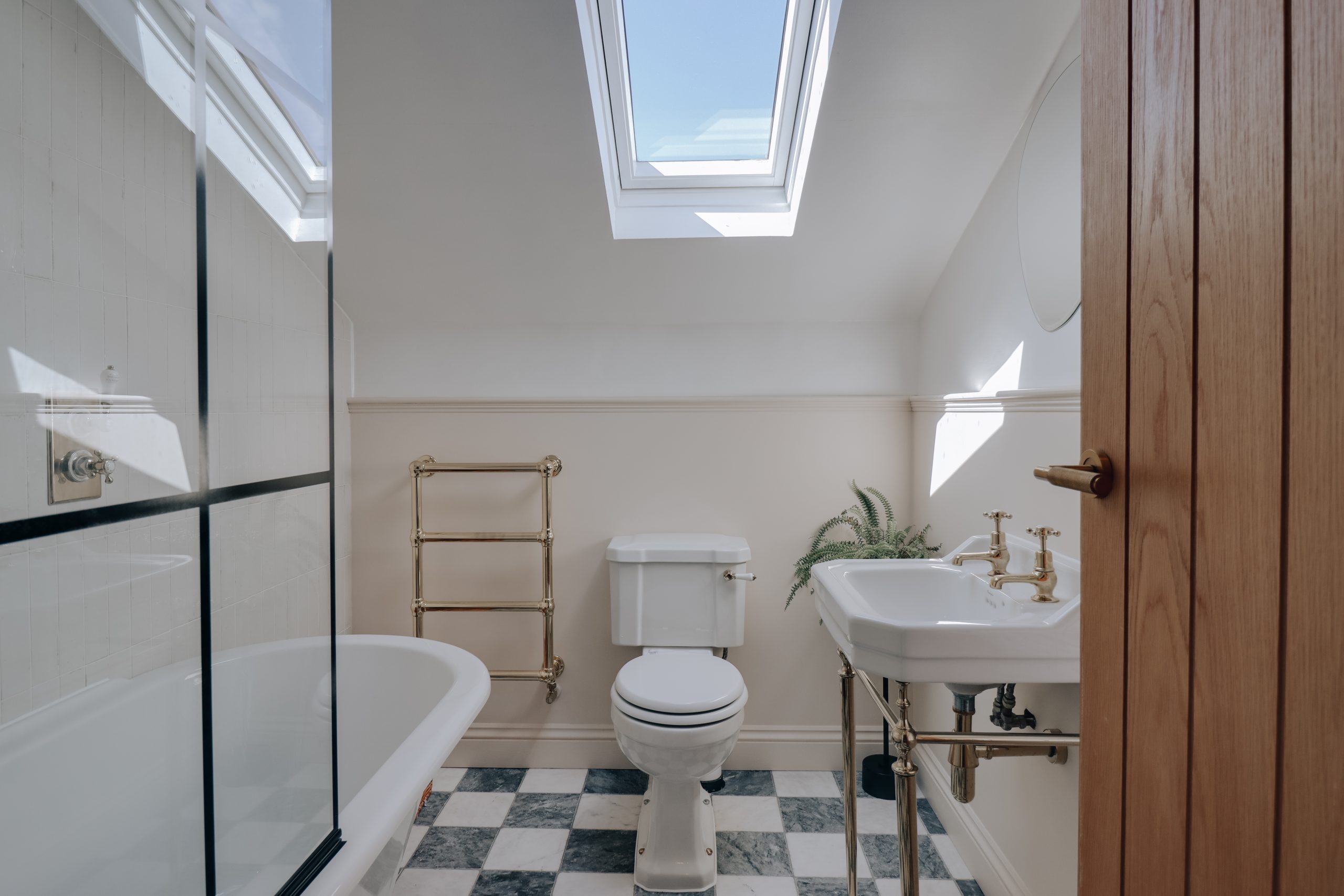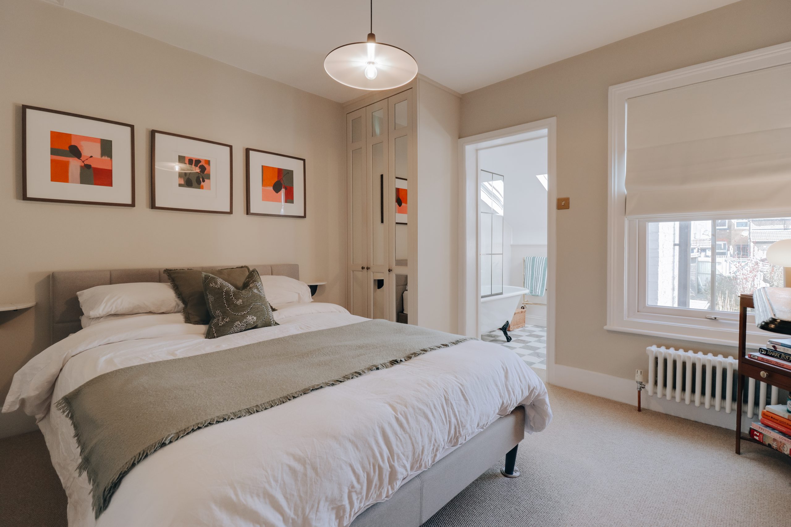 Upstairs, two generously sized double bedrooms offer a calm and comfortable escape. The principal bedroom enjoys abundant natural light via a large sash window, as well as elegant inbuilt cabinetry lining one wall for streamlined storage. Its en-suite bathroom is a true sanctuary, beautifully finished with heritage accents and a luxurious freestanding tub with gleaming gold fixtures. The second bedroom is equally versatile and spacious, ideal for guests, a home office, or a nursery - designed to adapt effortlessly to your changing needs.
