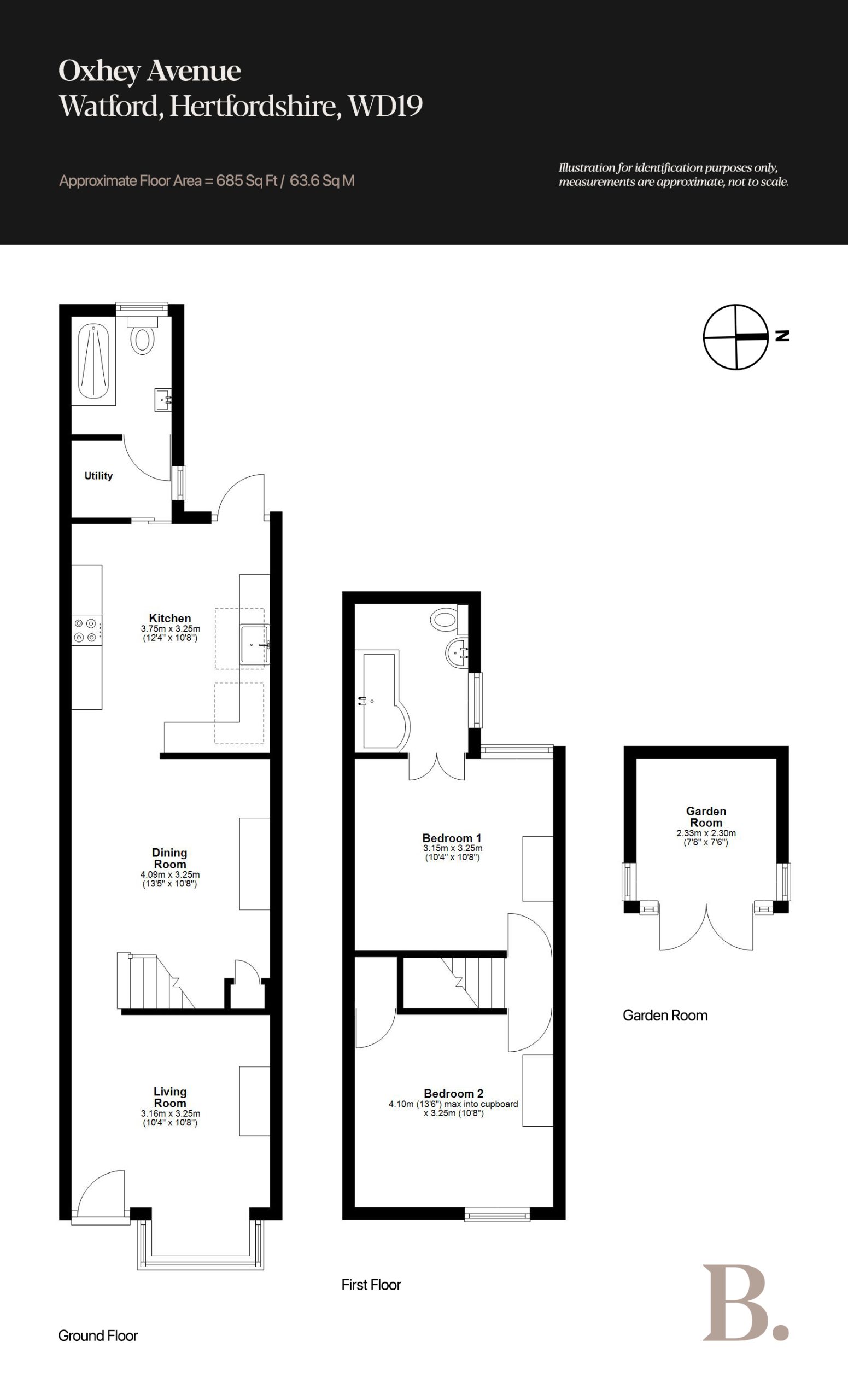Perfectly situated on the ever-desirable Oxhey Avenue and just a short stroll from Bushey Station, this two-bedroom, two-bathroom terraced home offers a seamless blend of character, charm, and modern convenience, move-in ready throughout. From the street, the kerb appeal is immediate: London stock brick, crisp white stucco, and classic clay roof tiles, framed by a manicured front garden.