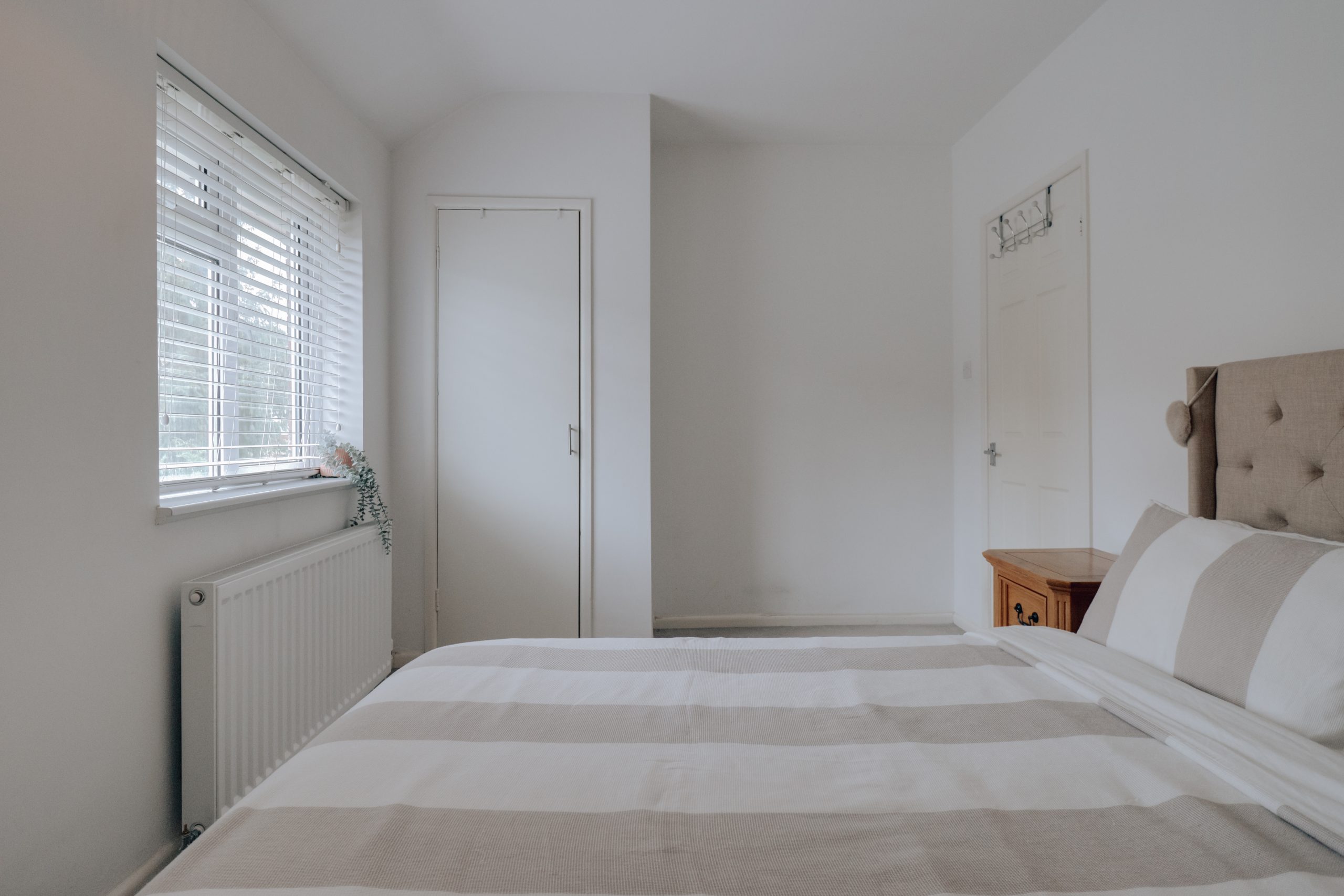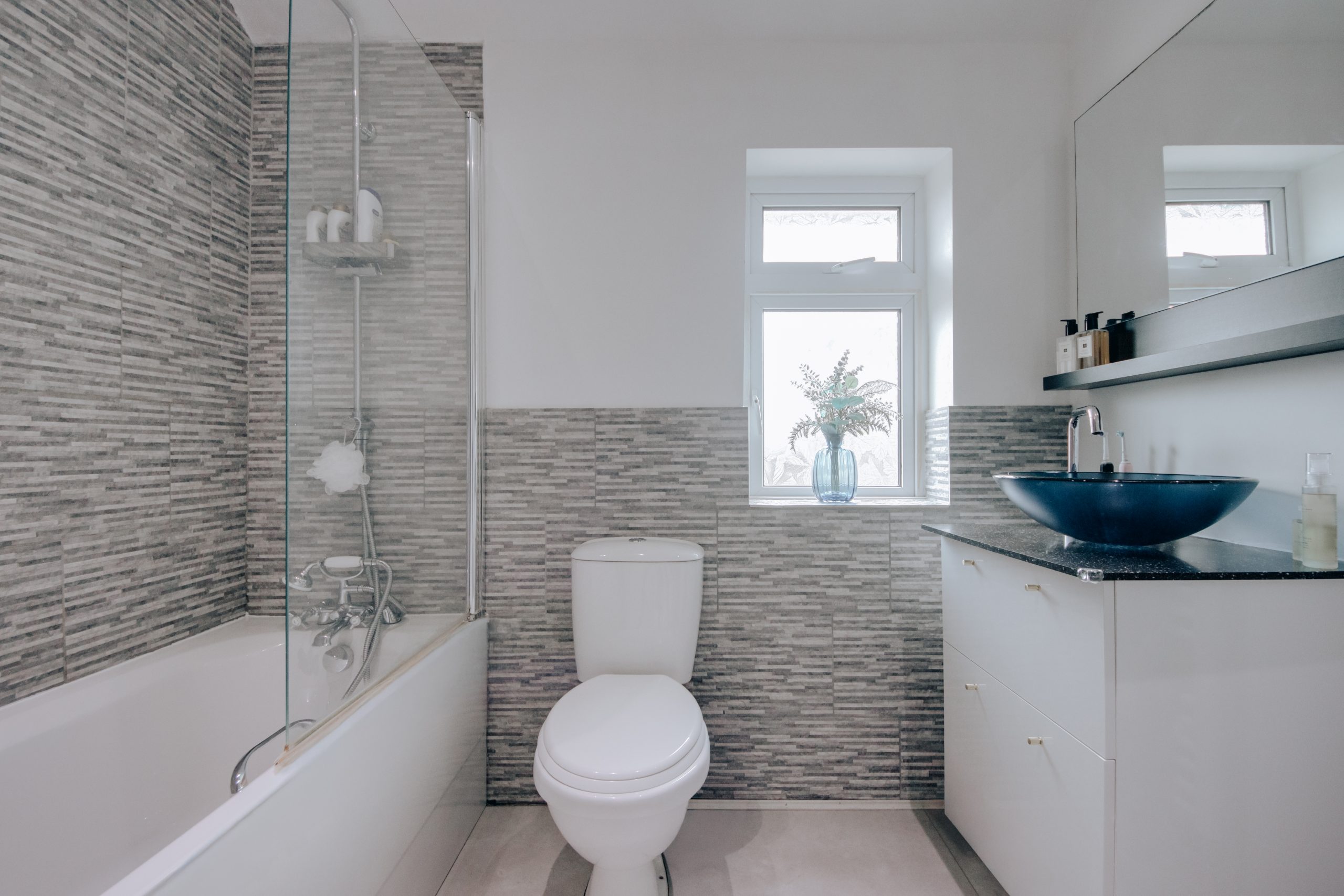 Upstairs, two generously sized bedrooms continue the home’s balanced proportions. The principal bedroom 8’11” x 15’6” benefits from built in storage and comfortable space for freestanding furniture, while the second bedroom is larger than many comparable homes, easily accommodating a double bed if required. The family bathroom completes the upper floor with a modern suite, featuring a bathtub with overhead rainfall shower and contemporary fittings.