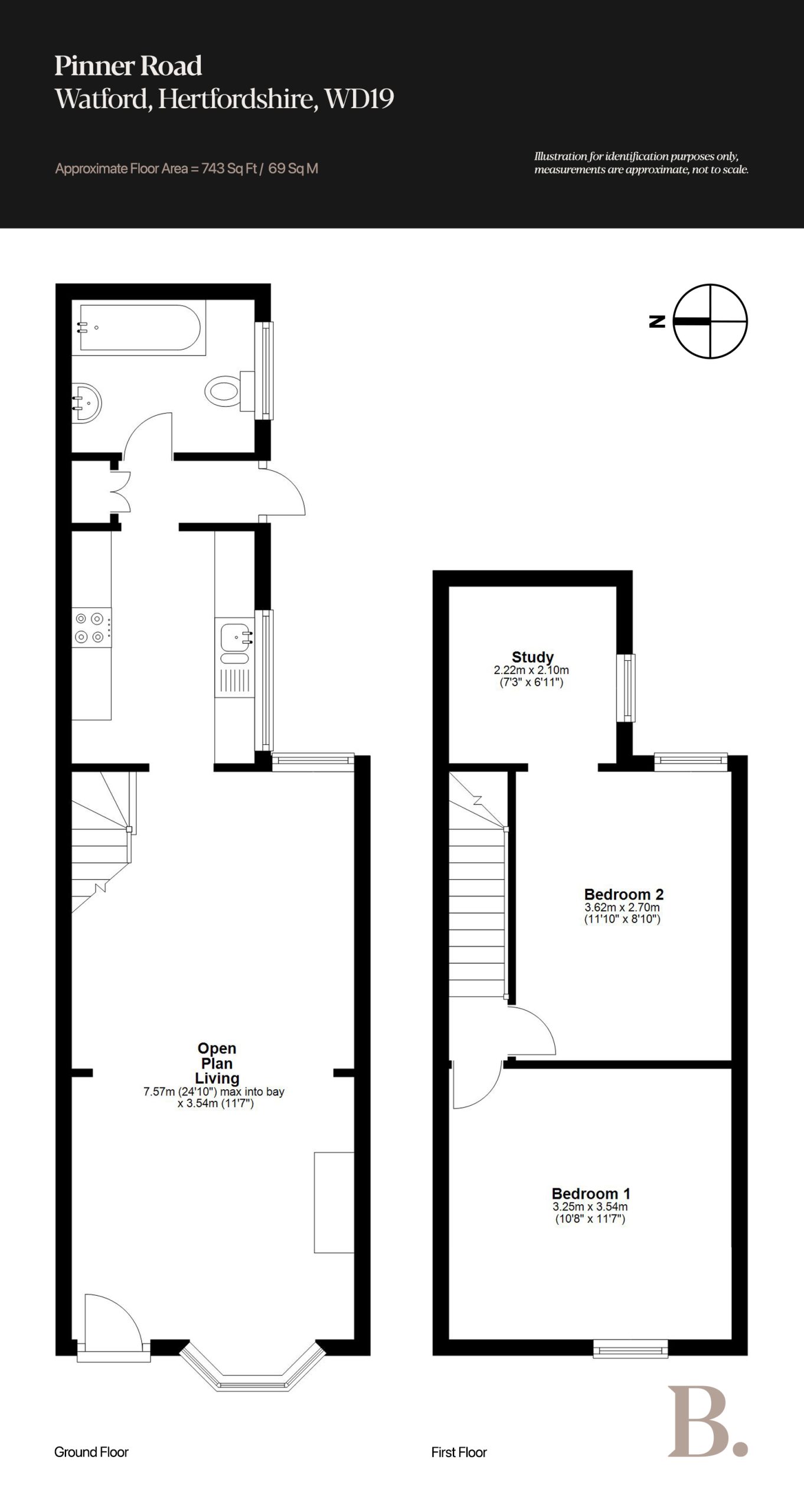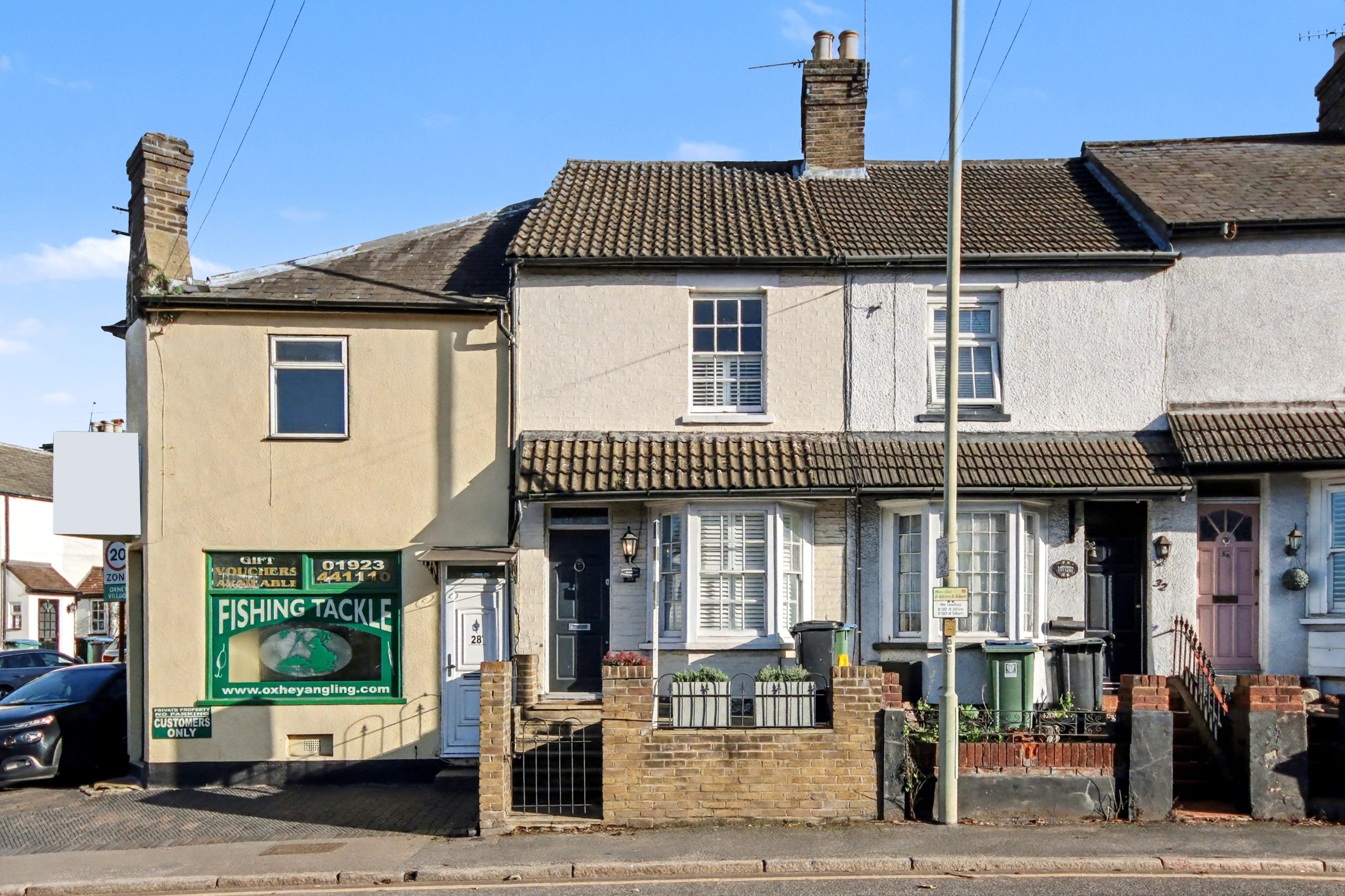 This beautifully presented two bedroom Victorian terrace on Pinner Road blends modern living with understated period charm. Thoughtfully maintained, the home carries a refined minimalist aesthetic that feels warm, calm and quietly characterful. Its façade is full of gentle appeal, with neutrally painted brick, a graceful ground floor bay, a matching first floor sash window with shutters and a simple, low-maintenance front garden. Bushey Station is only a short stroll away, with direct routes to London Euston in around 17 minutes.