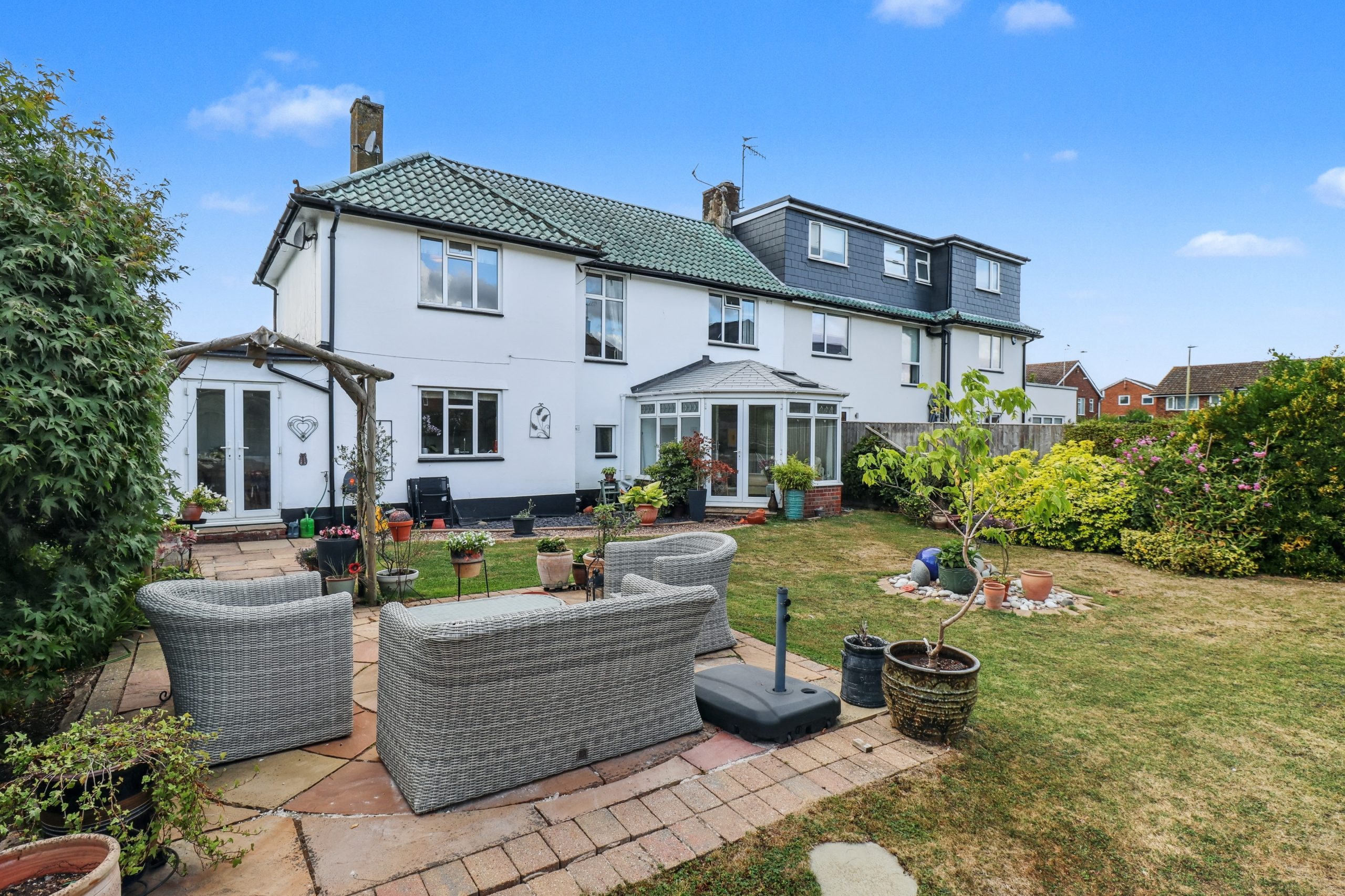 The rear garden is a true highlight: beautifully landscaped, immaculately kept, and designed for year-round enjoyment. A garage adds further practicality, whether for secure parking, storage or future conversion potential.
