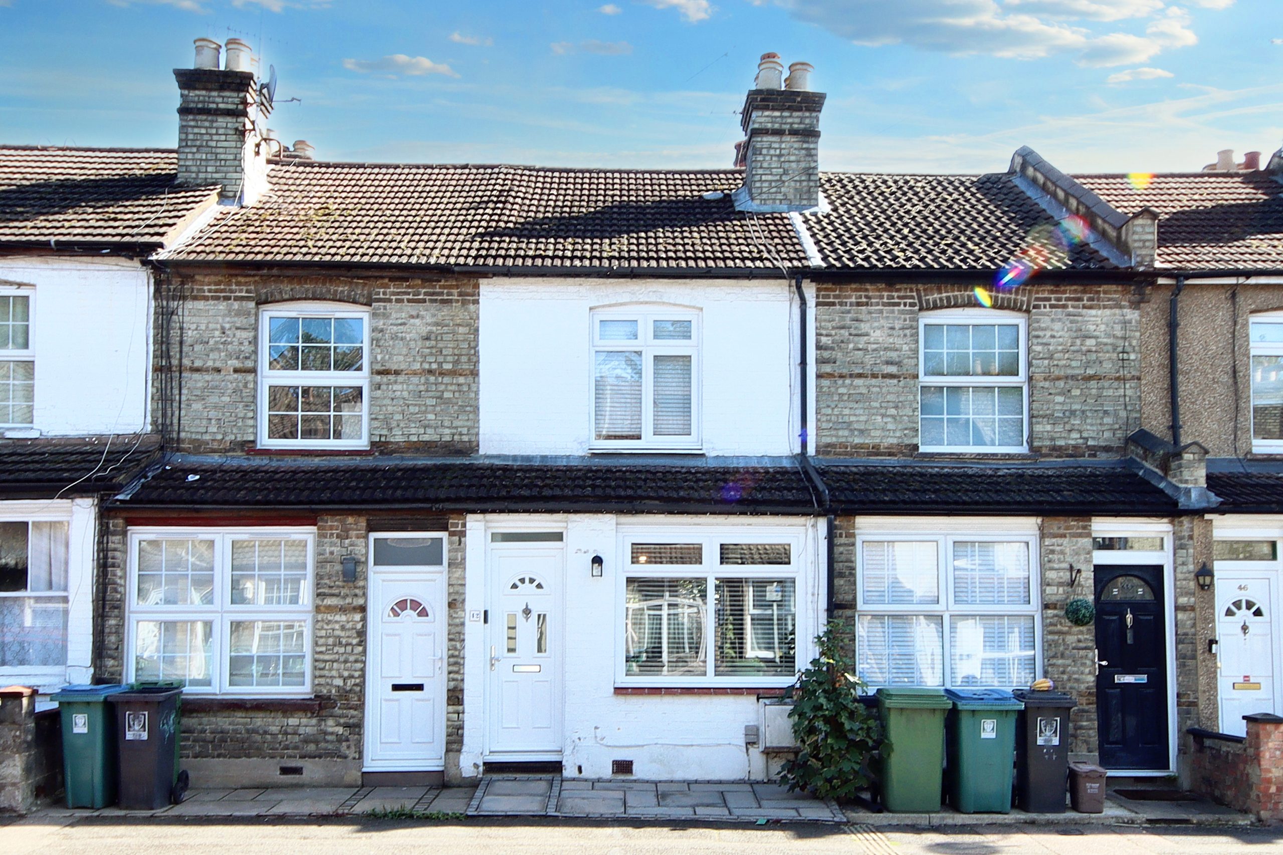 Ideally situated on Shaftesbury Road, just 0.45 miles from Watford’s High Street and Station, this charming two-bedroom mid-terraced home reflects the meticulous care of its current owners. They have skillfully preserved the property’s period features while incorporating a modern minimalist aesthetic. The exterior, a classic example of heritage design, features white-painted London Stock Brick, framed by a low-maintenance, paved front garden that abuts a resident pathway. Shaftesbury Road benefits from ample residential parking through a permit system, one-way traffic to reduce congestion, and is conveniently located just steps from Waterfields Recreation Ground.