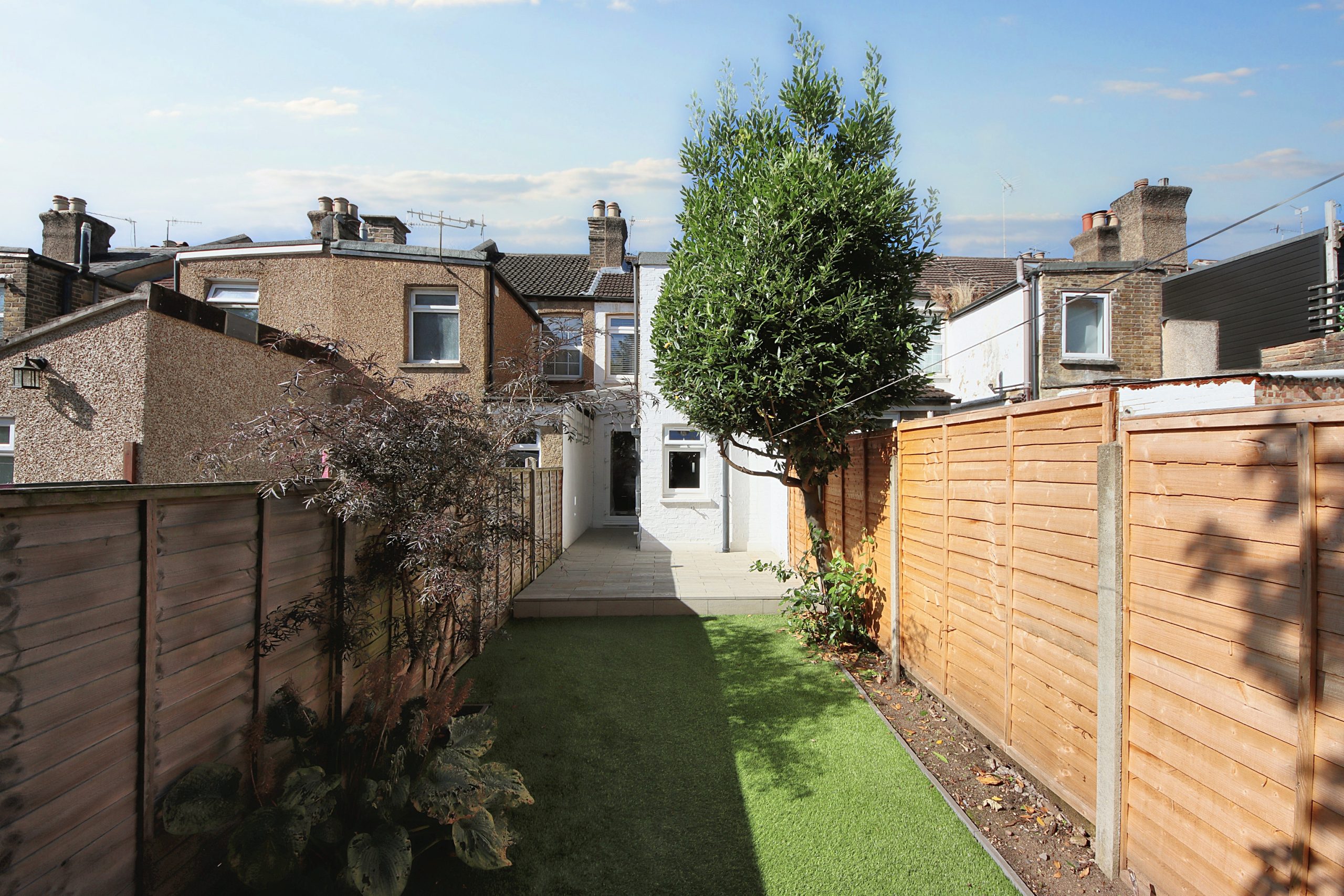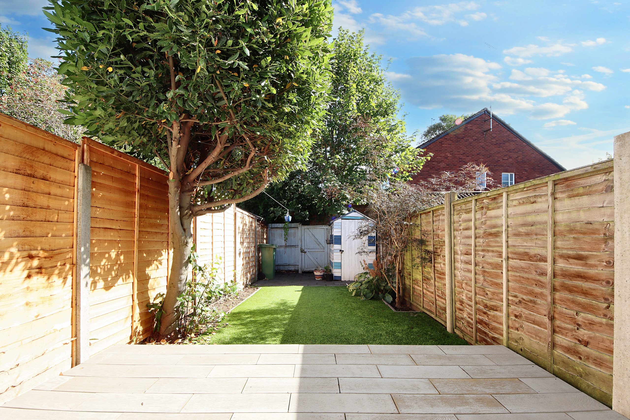 To the rear, the beautifully landscaped north-easterly facing garden features an artificial lawn and a useful garden shed, providing a serene outdoor retreat.