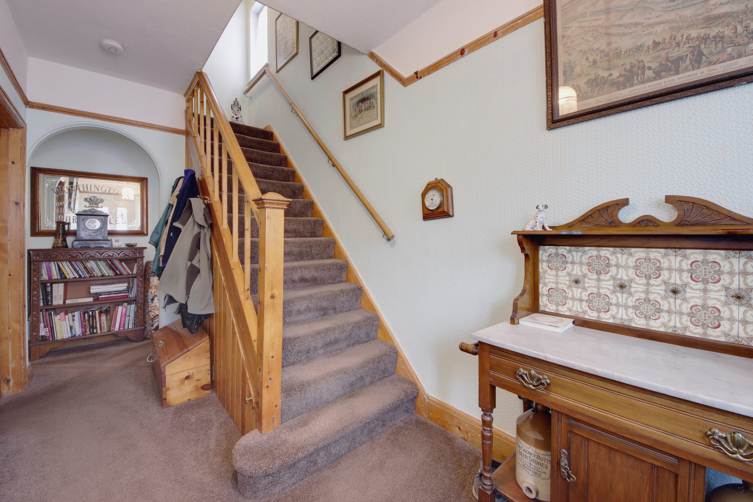 Ascending the staircase to the first floor, you'll find a spacious landing leading to three bedrooms. Both the original primary bedroom and the second bedroom boast nearly 15-foot dimensions, offering total flexibility for the eventual occupant. Measuring an impressive 10ft, the third bedroom offers delightful views of the local surroundings. A family bathroom, and loft-hatch granting access to a fully-boarded and pine clad loft with fitted Velux window completes the first floor.