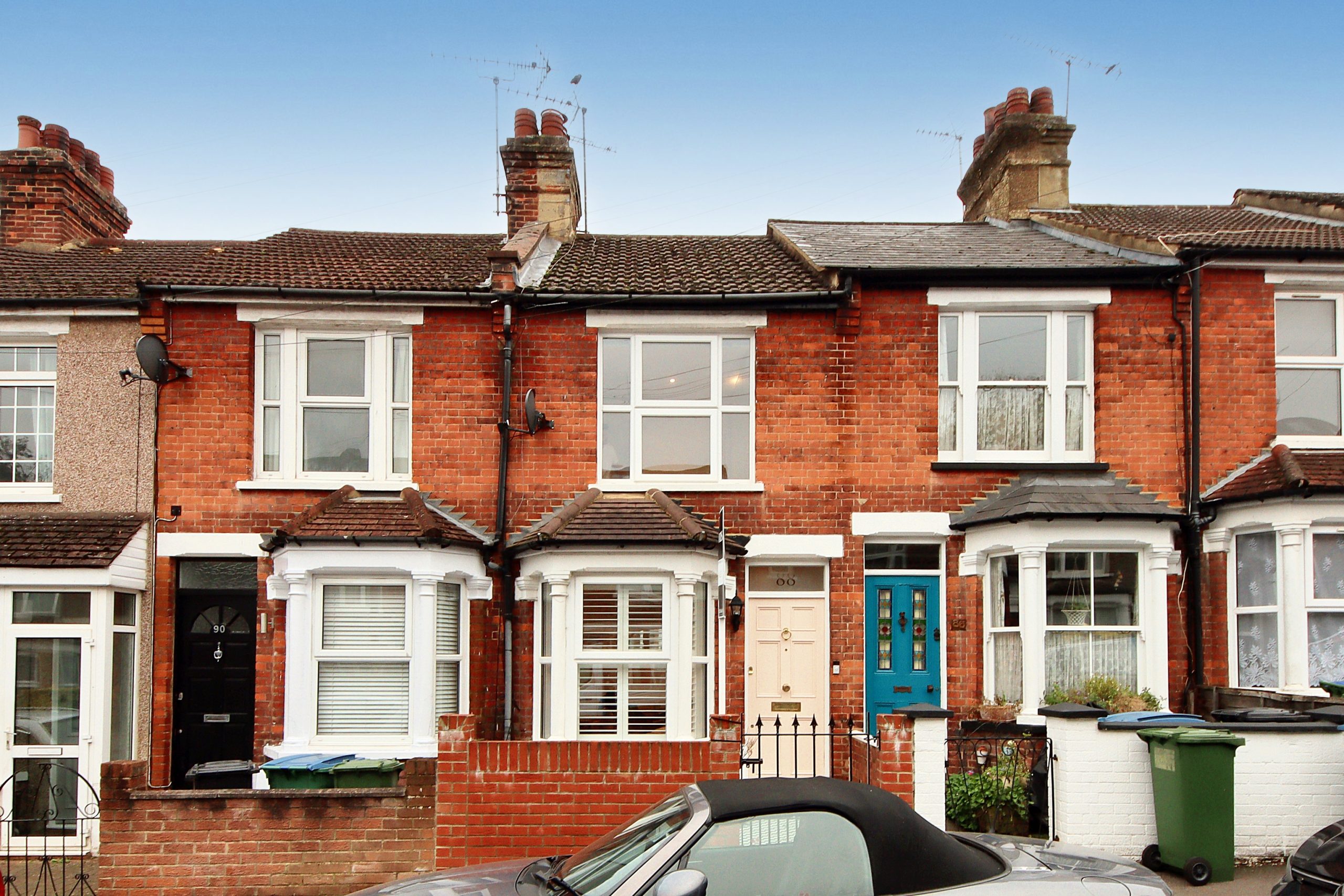 This beautifully renovated two-bedroom Edwardian terraced house on St. James Road masterfully combines modern living with classic charm. The exterior exudes character, featuring traditional London stock brick and pristine white windows with stylish shutters. A low-maintenance, monochrome-chequered tiled front garden leads to a striking pastel-pink front door, complete with an integrated door number set in the frosted glass above. Ideally located just a short stroll from Watford High Street, this property offers convenient access to a variety of amenities, including Watford High Street Station, which provides direct links to Central London and beyond.