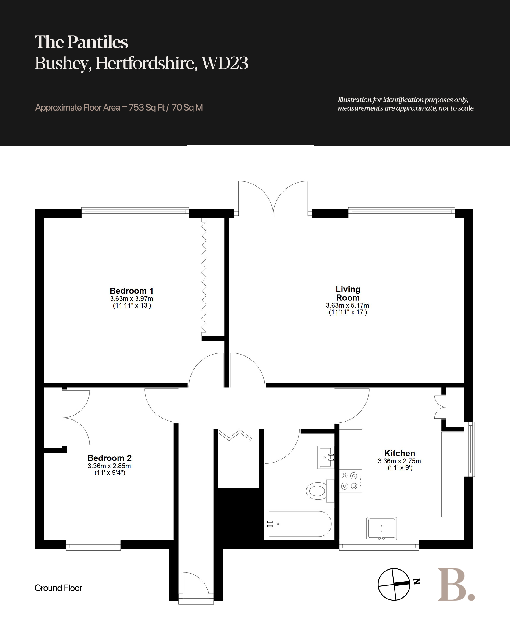Set within one of the area's most quietly regarded addresses, this beautiful, two-bedroom ground floor maisonette offers just over 750 sq.ft of well-considered living space. Carefully updated throughout, the home strikes a balance between a fresh, cohesive finish and the subtle character details the building lends naturally. A neatly maintained communal garden sits to the front, with ample parking available within the cul-de-sac. A private garage (currently rented by the outgoing owners, with the tenancy available to pass on to the new occupier) adds a practical advantage that is rarely found, locally. Combined with no ground rent and a modest monthly contribution toward garden maintenance, it makes for a compelling proposition for first-time buyers, downsizers and investors alike. For the commuter, Bushey Station is ten minutes by car, with a direct seventeen-minute service into London Euston.
