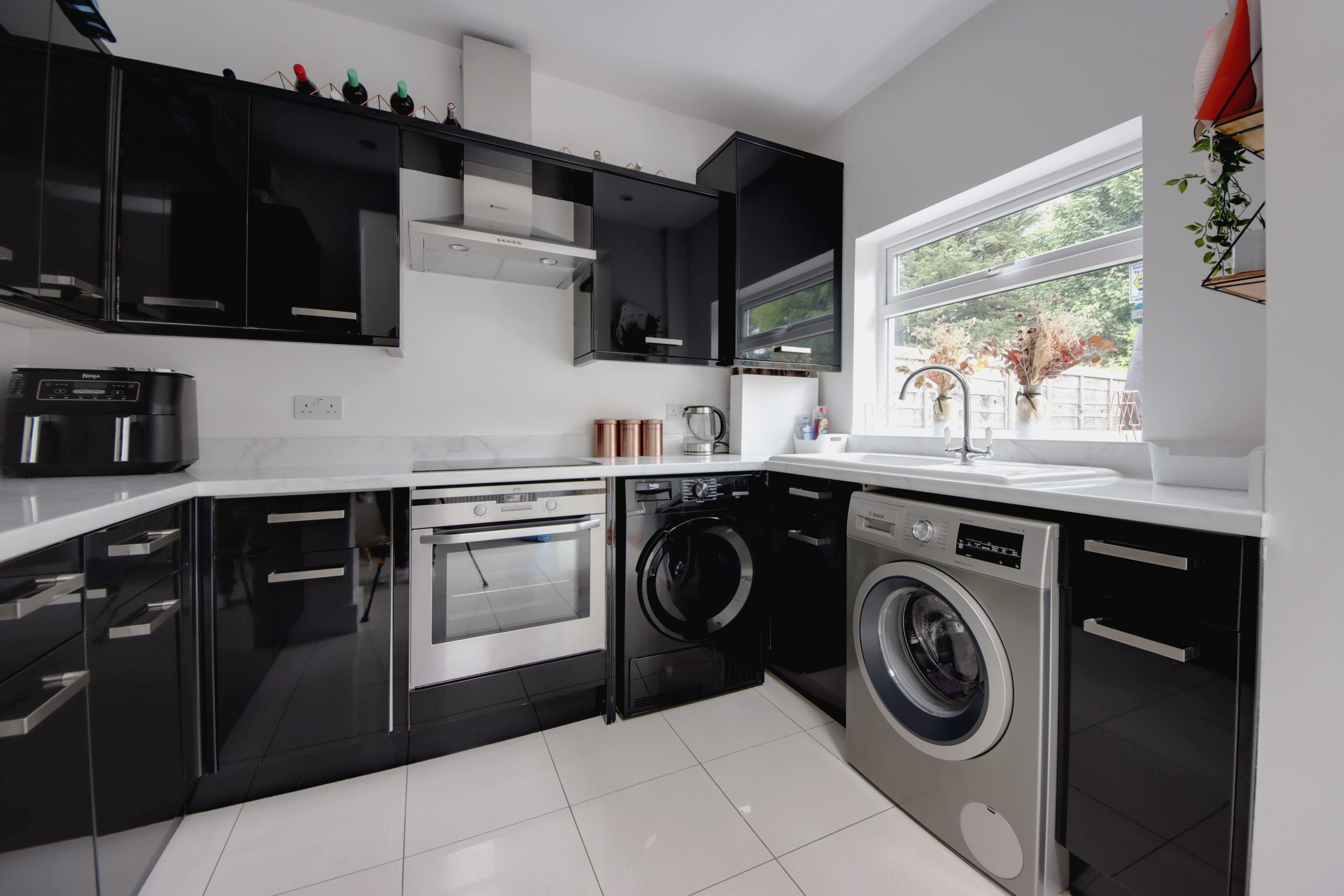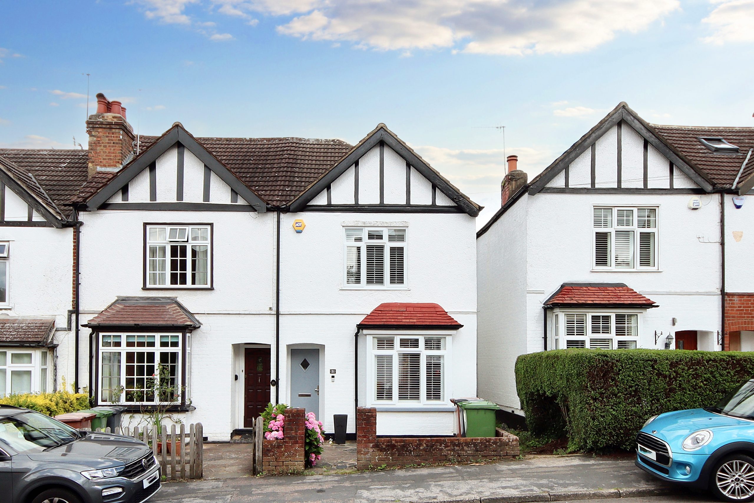 Located on Titian Avenue, this two-bedroom end-terraced house has undergone a remarkable renovation in recent years. Carefully preserving its original features, the interior seamlessly integrates a refined, minimalist design. The exterior exudes character with a combination of bright white pebble-dash, brick, and a mock-Tudor gable end, all framed by an easy-maintenance, crazy-paved front garden with convenient side-gate access.