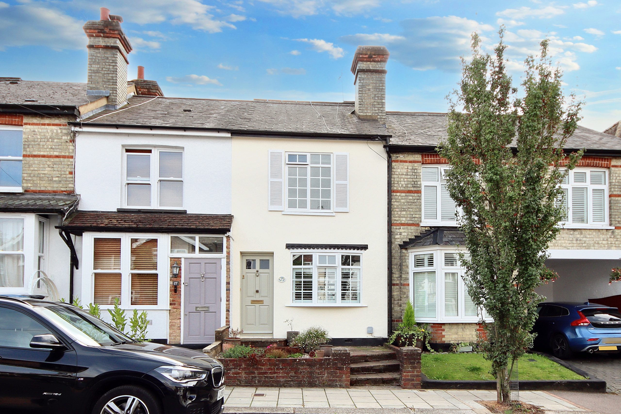 This beautifully renovated, 830 square foot two-bedroom Victorian terraced house on Upper Paddock Road offers an ideal blend of modern convenience and period charm. Meticulously refurbished, the home maintains its original features while embracing a refined minimalist design, creating a warm and inviting atmosphere throughout. The property features a striking façade, fully-rendered in a neutral tone with pristine white windows and stylish shutters, complemented by a low-maintenance crazy-paved front garden. Conveniently located just a short walk from Bushey Station, which provides a direct 17-minute link to London Euston.