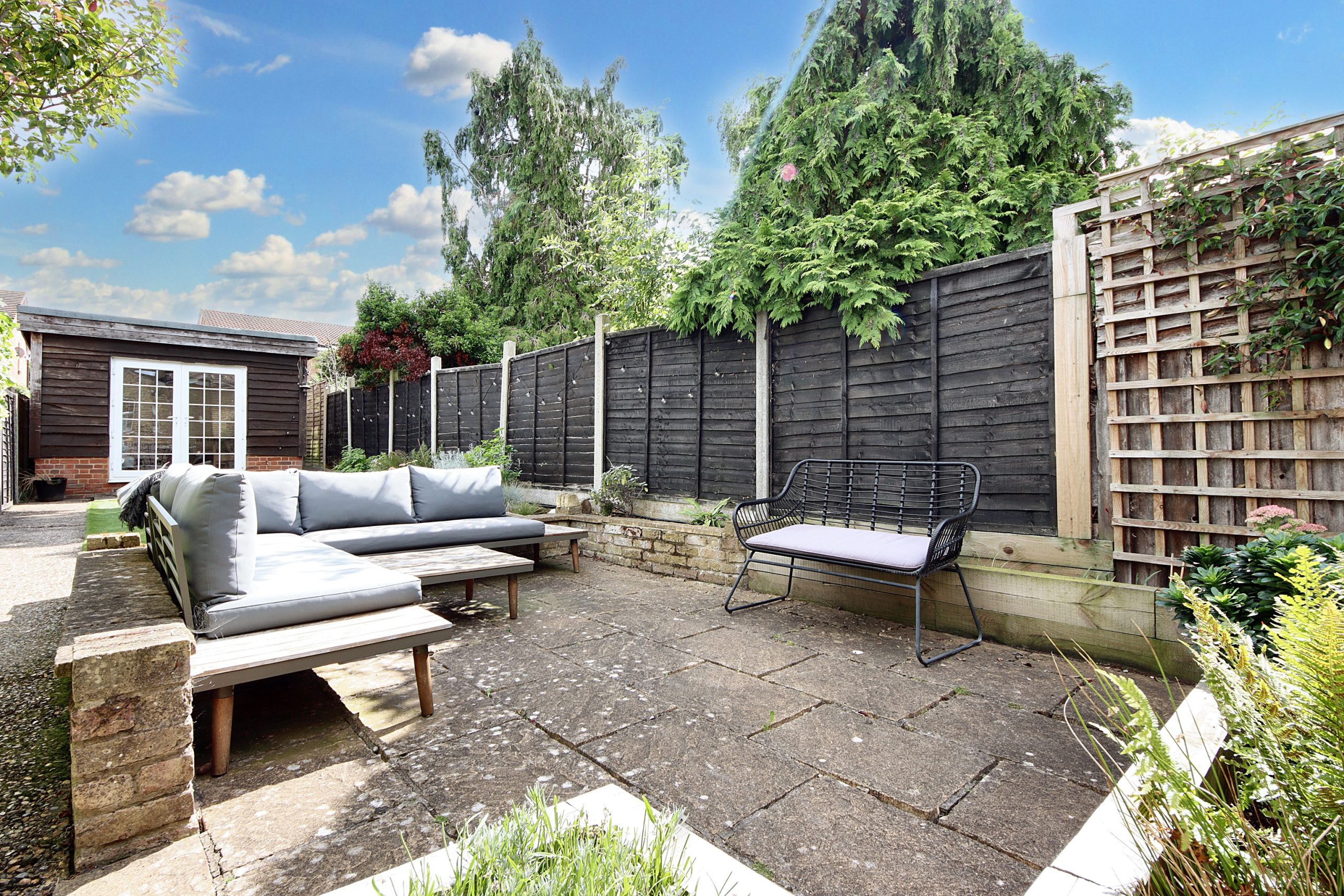 The easterly-facing garden extends seamlessly from the rear of the house, centred around a well-maintained lawn. Additional features include convenient side access and a substantial 116ft outbuilding, currently used as a home office but versatile enough to be transformed into a gym or any other space to suit the new owner's needs.
