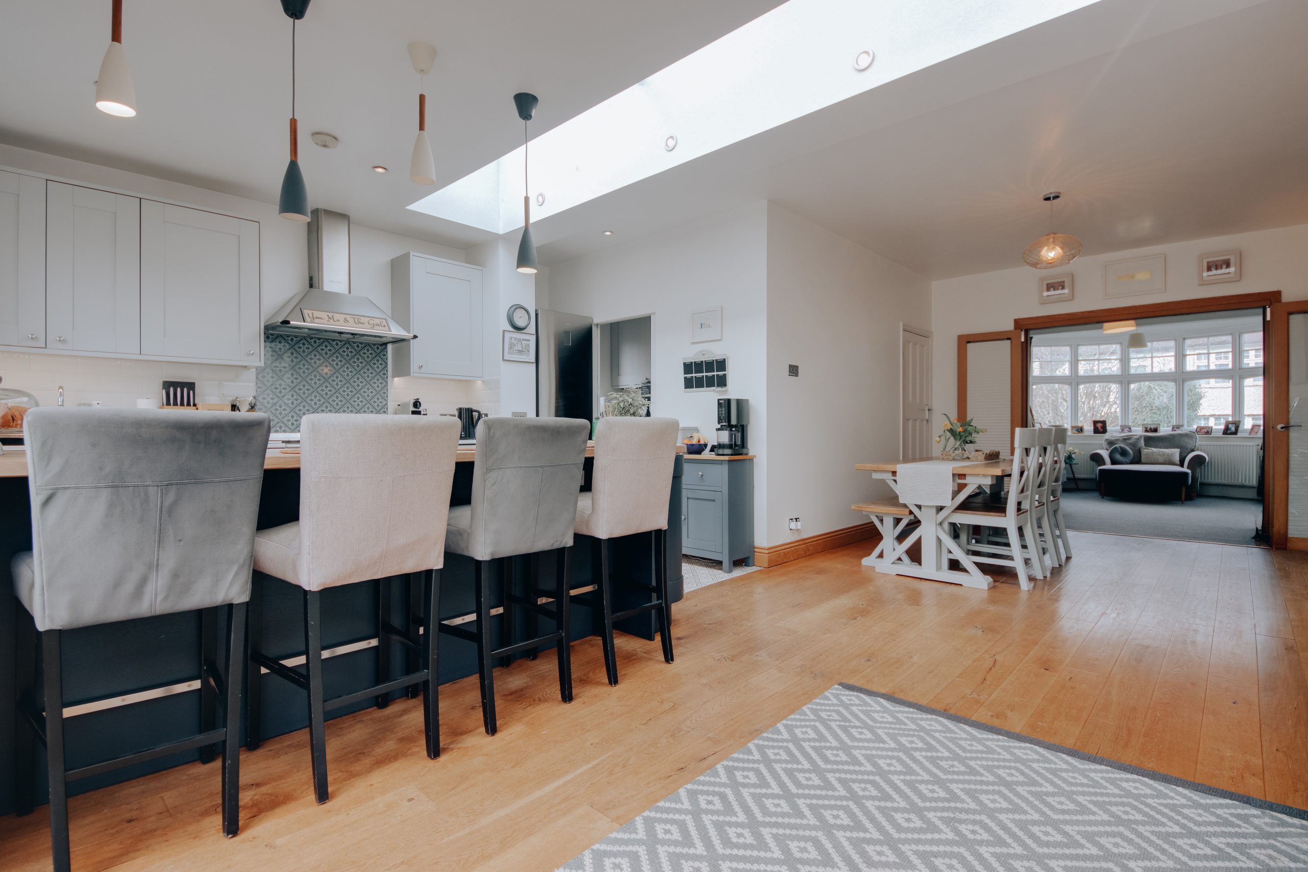 Expansive, 25' x 15' open-plan kitchen and dining space